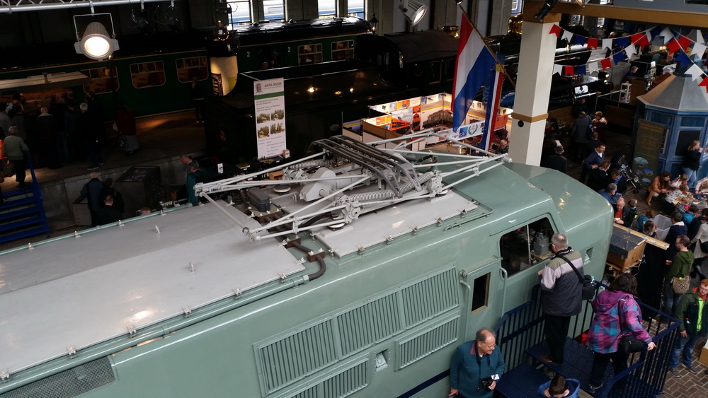 Gegenüber vom Büffee in einem dunklen Gang mit Schrottplatz zwei Leute, die elektronisches Hörgerät ausgeben. Was gibt’s hier? Geschichte! Ab in den Aufzug und einfach mal runterfahren und anhören. Wat is ene Dampfmaschine, was hat Stephenson draus gemacht, wie kam die Erfindung nach Holland, wie wird eine Lokomotive überhaupt gebaut und wie sieht sie aus, wenn sie fertig ist, die erste niederländische Dampflok. Dazu Brückenmodelle und alte Bilder hinter Glas. Bestimmt teuer.