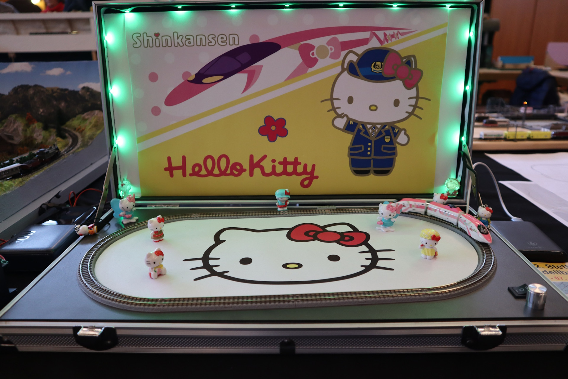 In einem Koffer mit passendem Design unterwegs, der Hello Kitty Shinkansen als Shorty