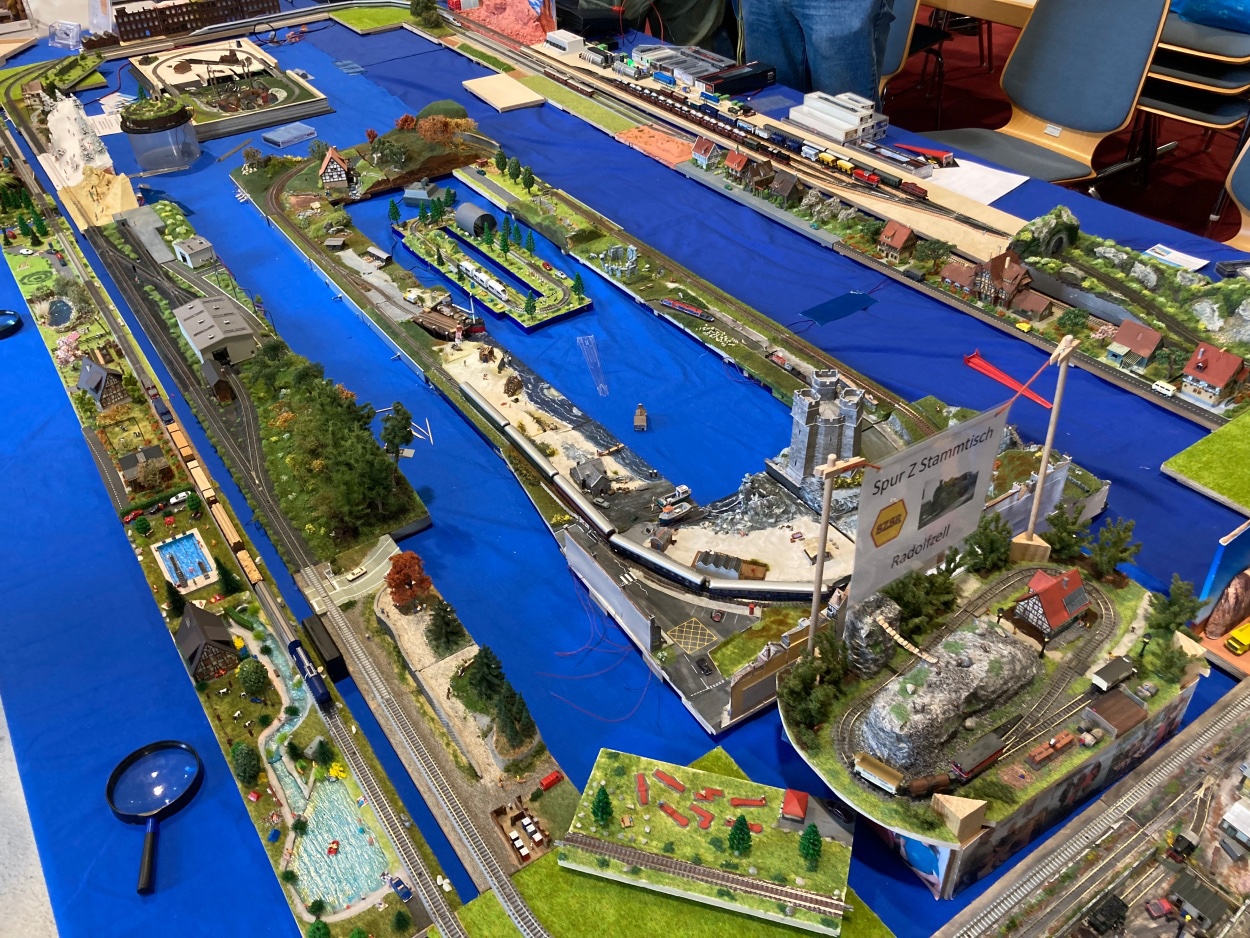 - ehrliche Begeisterung für den Auftritt des Stammtischs Radolfzell. Die präsentierte Vielfalt bei den Brettchen, die Motivauswahl, aber auch der Detaillierungsgrad haben jede Menge Spaß der Erbauer erleben lassen. Unermüdlich standen die Radolfzeller Rede und Antwort und haben dabei ihre Begeisterung für die Spur Z weitergetragen. Es hat großen Spaß gemacht, auch Dinge gezeigt/ erklärt zu bekommen, die man beim "Drüberschauen" sicherlich übersehen hätte.