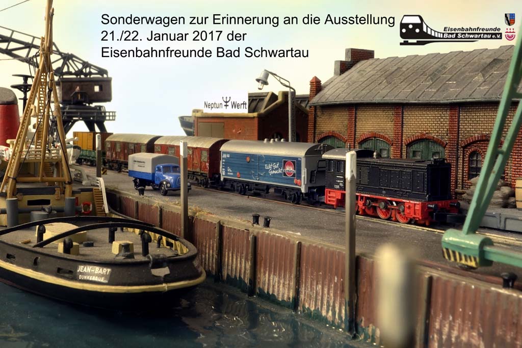 Anlässlich der Modellbahnausstellung in Bad Schwartau wurde ein Sonderwagen Artikel 8600.165 zur Erinnerung an die Ausstellung 21./22. Januar der Eisenbahnfreunde Bad Schwartau aufgelegt. Ein Grund mehr nach Bad Schwartau zu fahren, um sich noch einen Wagen zu sichern.
