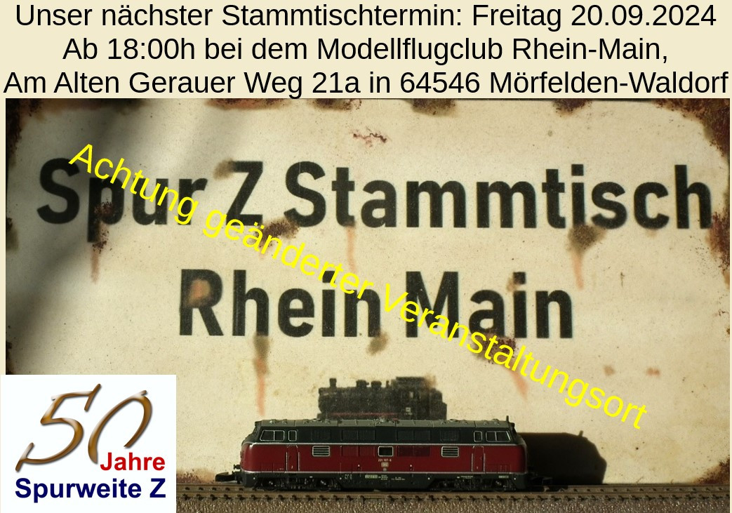 Bitte unbedingt beachten, wir treffen uns diesmal nicht in der Gaststätte "Eiserne Hand" in Wiesbaden sondern im Vereinsheim des Modellflugclubs in Mörfelden-Waldorf.