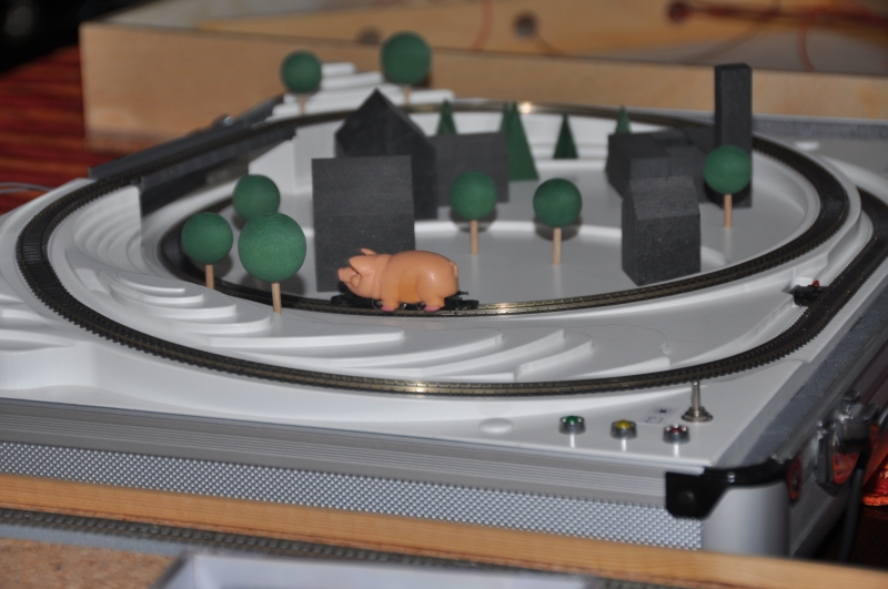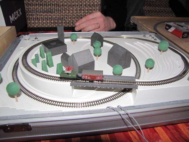 auch gut anzusehen war. Holger hatte den Märklin Alukoffer mitgebracht, auf dem dann die S A U ihre Runden drehen