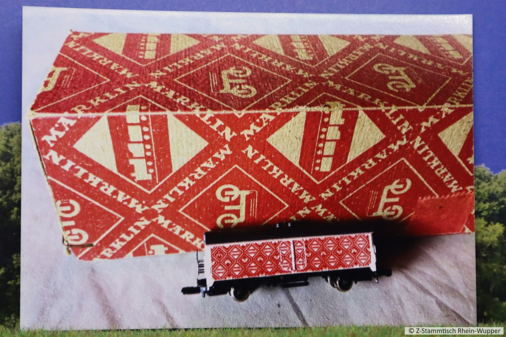 Von einer alten Märklin Verpackung (incl. Spur Z Wagon im identischen Design) machten diese Fotos ihre Runde am Stammtisch