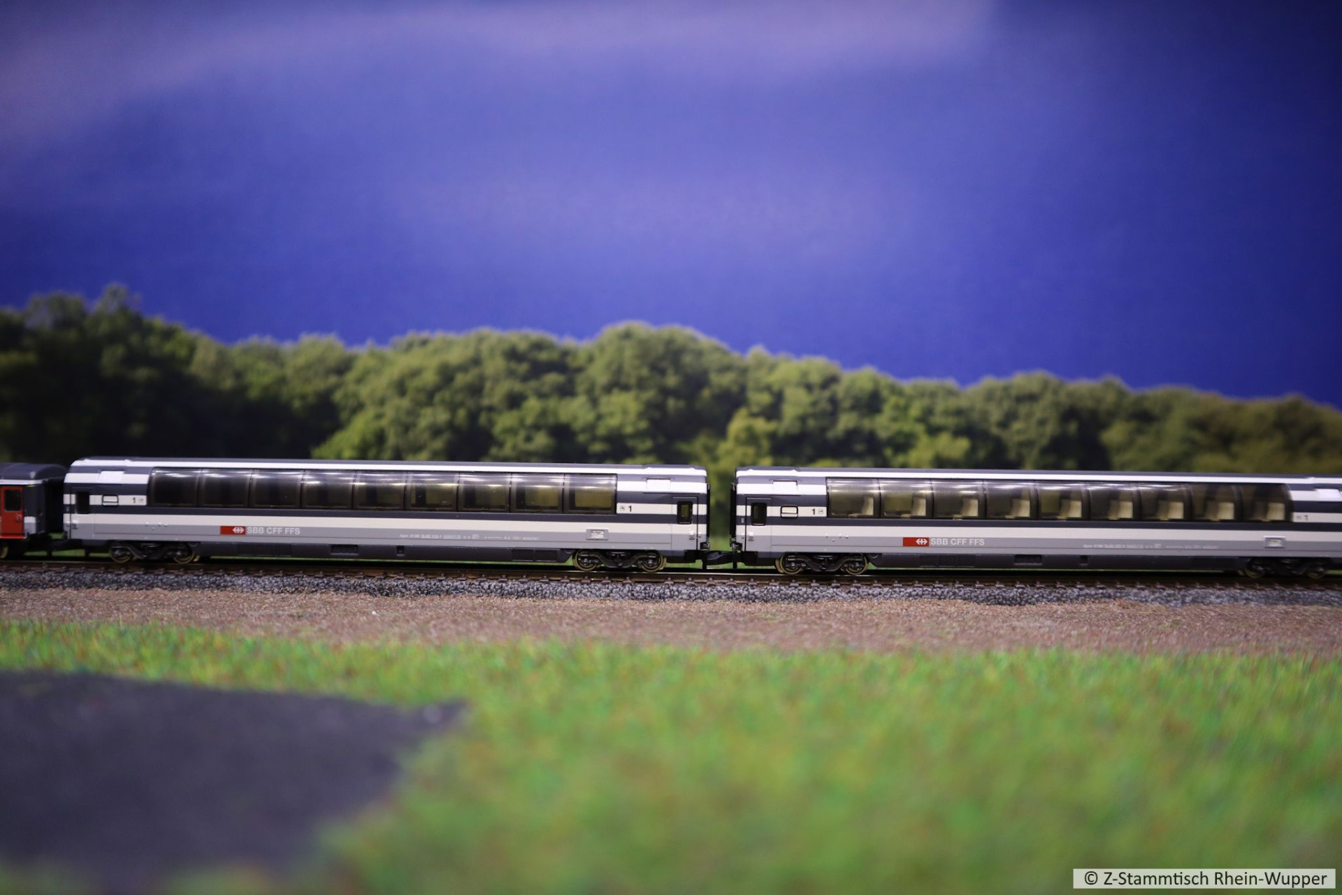 Am Vorbild orientiert sich die Zugbildung hinter der Re 4/4 II bestehend aus EuroCity- und Liegewagen