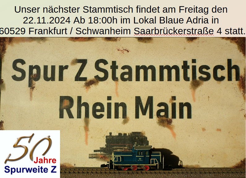 Vorab schon zur Info, zu unserem Januar Stammtisch treffen wir uns dann wieder im Lokal Blaue Adria in Frankfurt Schwanheim.