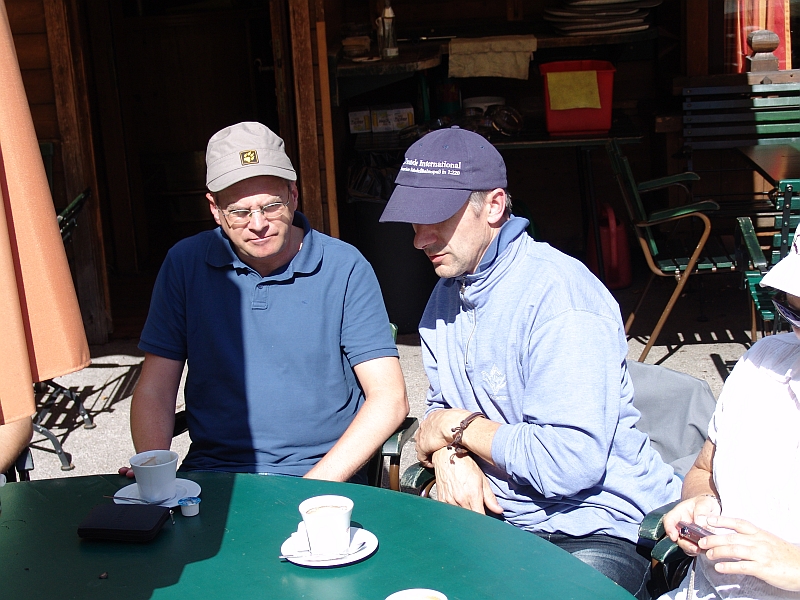 Die Wirtin auf der Gaisalm sorgte noch dafür, dass unsere Nachzügler, denn sie kamen ja gerade an, als der Rest der Truppe die Schiffsrundreise fortsetzte noch was zum Essen bekamen und wieder rechtzeitig am Bootssteg waren als wir auf der Rückfahrt wieder an der Gaisalm anlegten.