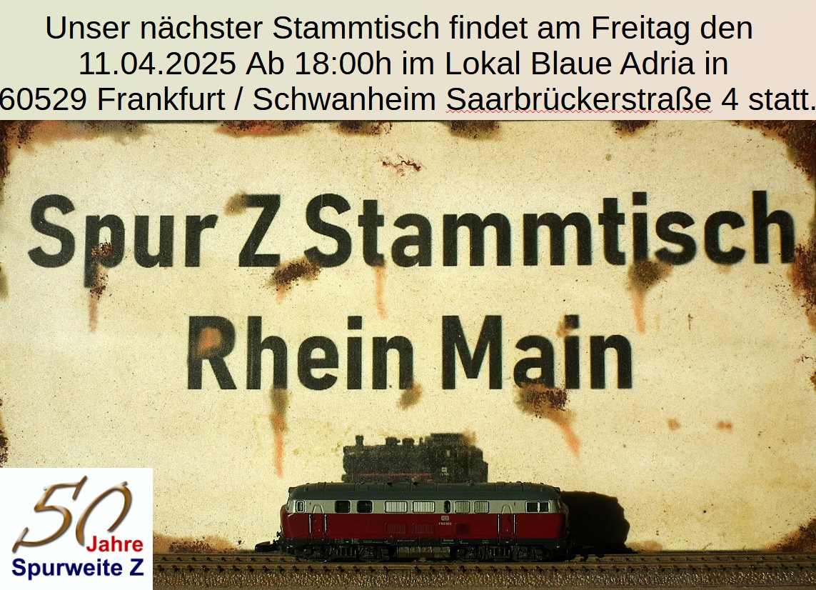 für Euch nochmal zur Erinnerung, unser nächster Stammtisch findet am kommenden Freitag den 11.04.2025 wieder ab 18:00h in der Gaststätte Blaue Adria in Frankfurt Schwanheim statt.