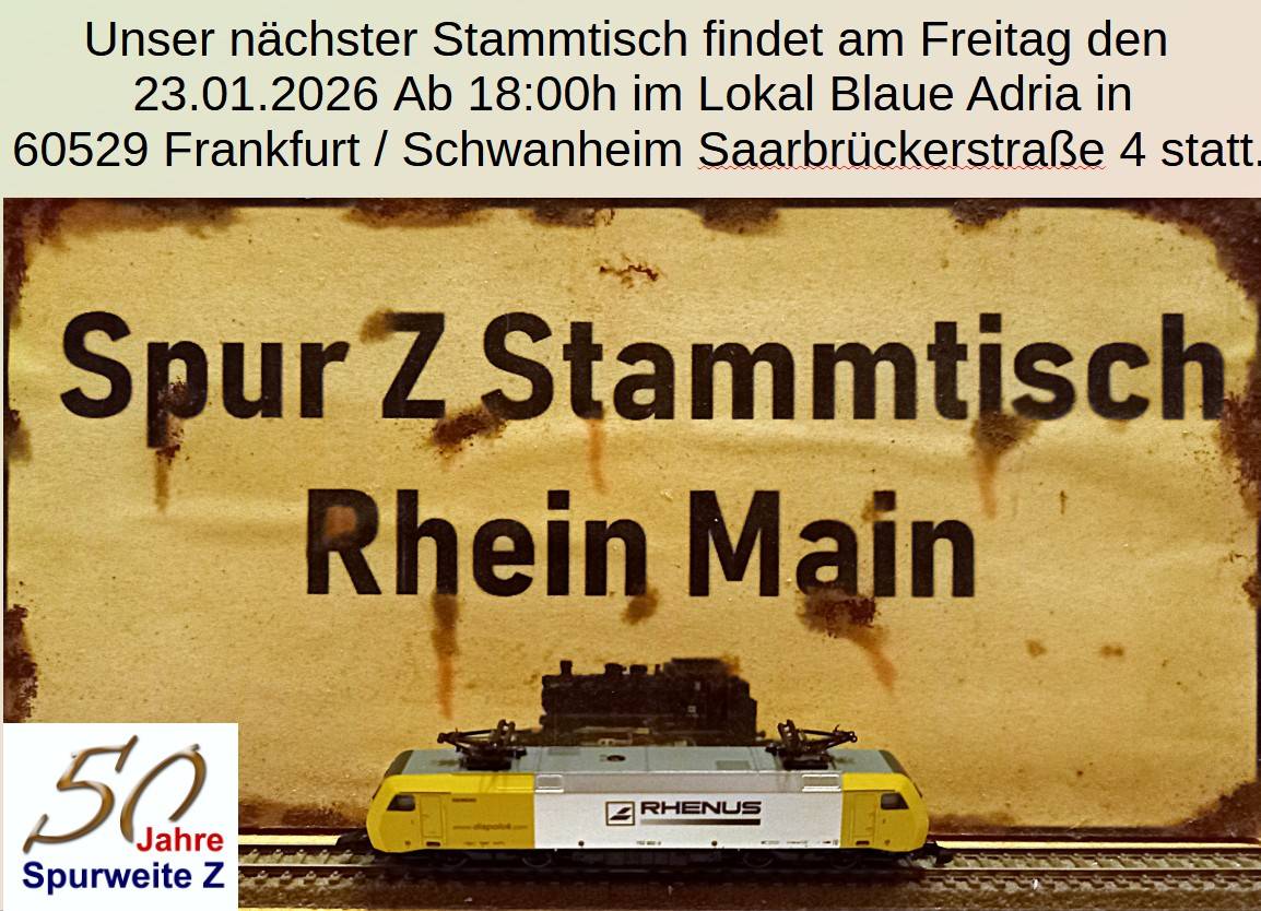 für Euch nochmal zur Erinnerung, unser nächster Stammtisch, und somit auch der erste im neuen Jahr, findet am kommenden Freitag den 23.01.2026 wieder ab 18:00h in der Gaststätte Blaue Adria in Frankfurt Schwanheim statt.