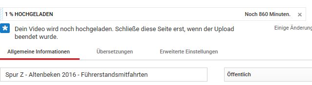 Neues Update: Ich weiß jetzt, was "Zwangstrennung durch den Anbieter" bedeutet.wernerle2 hat geschrieben:In etwa 850Minuten sollten die gesammelten virtuellen Führerstandsmitfahrten von Altenbeken 2016 hier zu sehen sein: