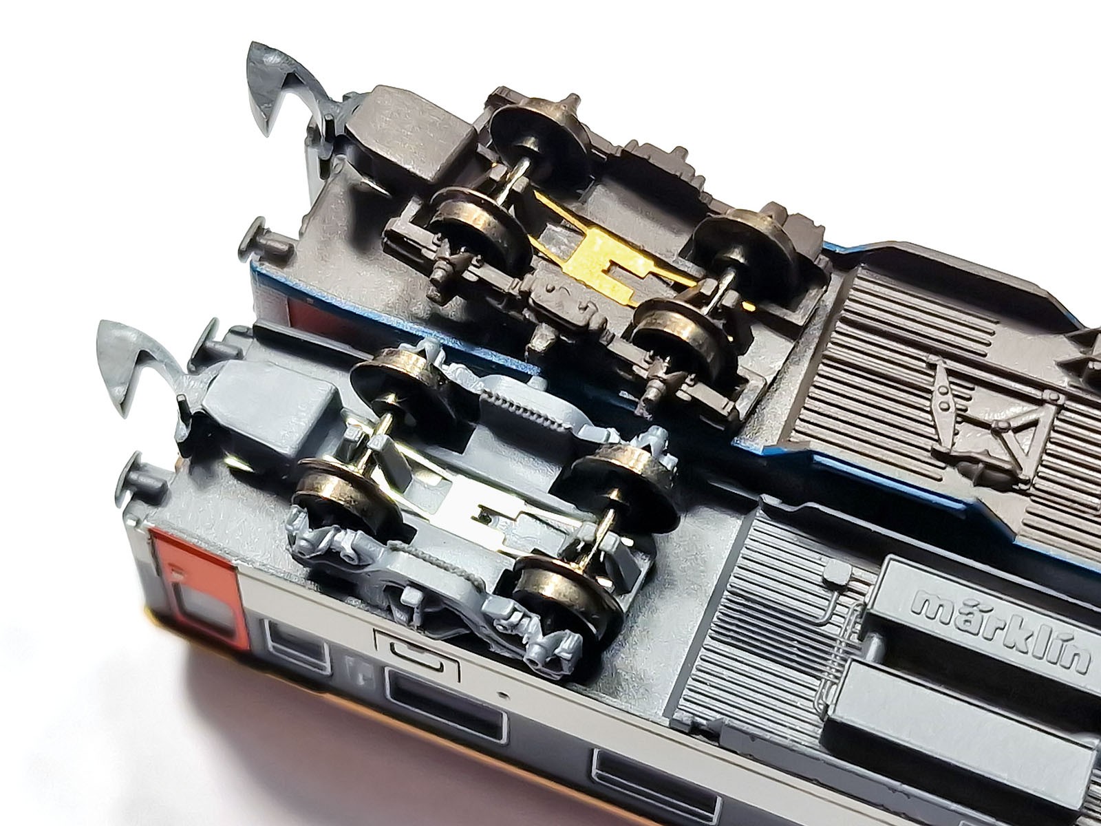 Of course, this issue can be partially resolved by adding energy storage circuit to analog or digital interior lighting solution, but I was looking a way to improve the parts that pick up the electricity from the wheelsets themselves. Initially, it was an idea to add a gold plating over the brass surface. Although it may seem to be a good solution, it has two obvious downsides: a) the price may increase quite noticeably; b) thin gold plating will inevitably wear out with time, and the problem with oxidizing will return back again.