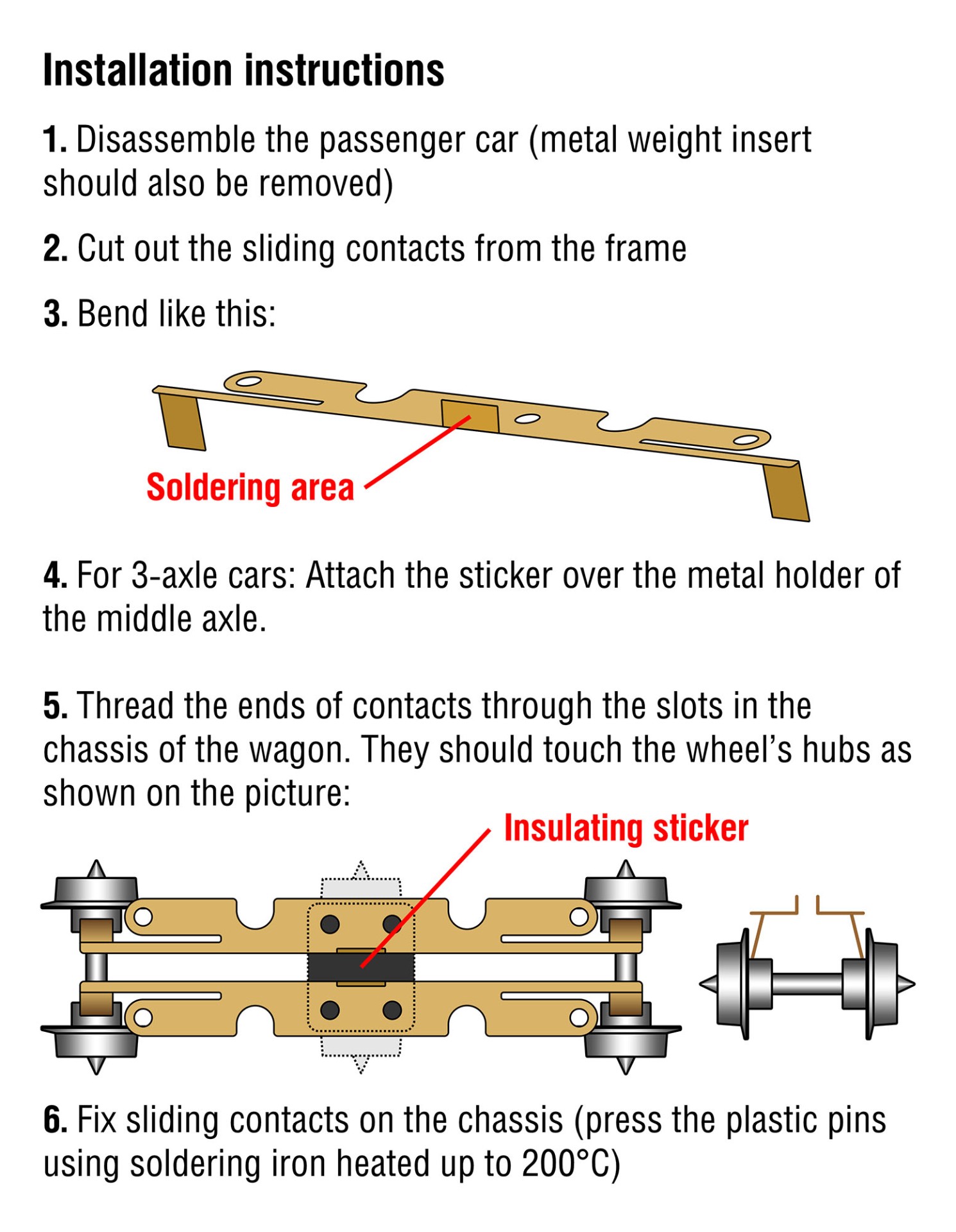 I added to the package a precut plastic sticker for insulating the metal holder of the middle axle for 3-axle cars. Now the item is delivered this way:
