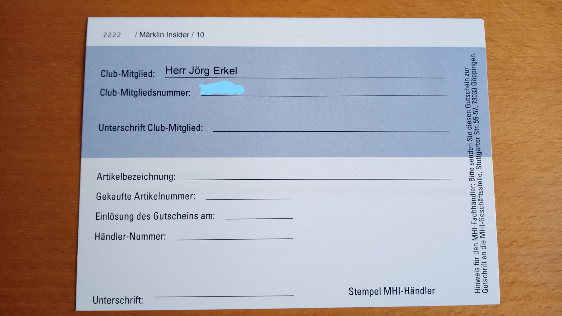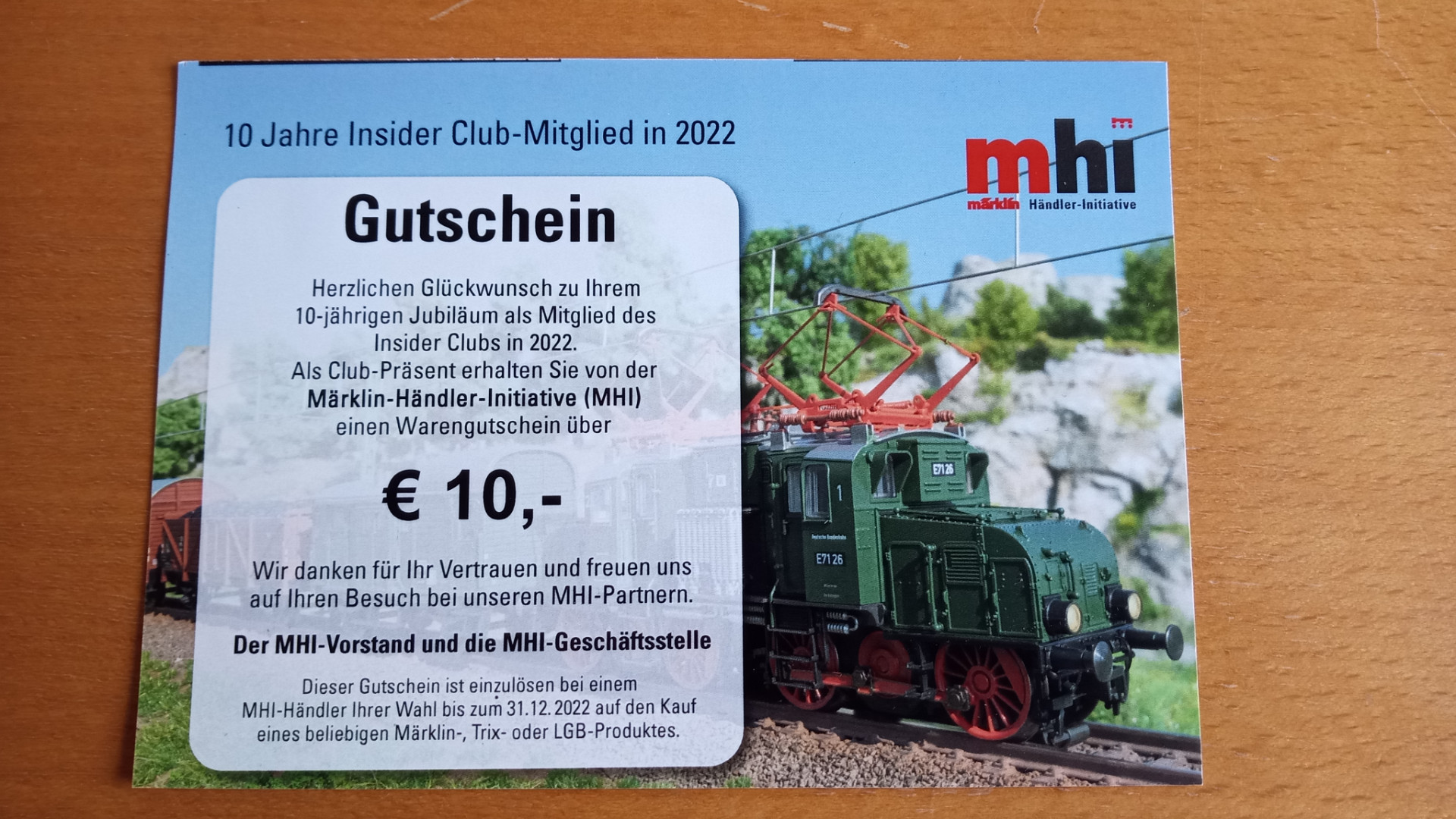 jerkel hat geschrieben: So 25. Sep 2022, 17:55 Ja, von Märklin. Zu 5 Jahren gibt es einen 5€ Gutschein, zu 10 Jahren einen 10€ Gutschein und so weiter. Ich habe vergangene Woche auch 2 Gutscheine für meine 2 Mitgliedschaften erhalten.
