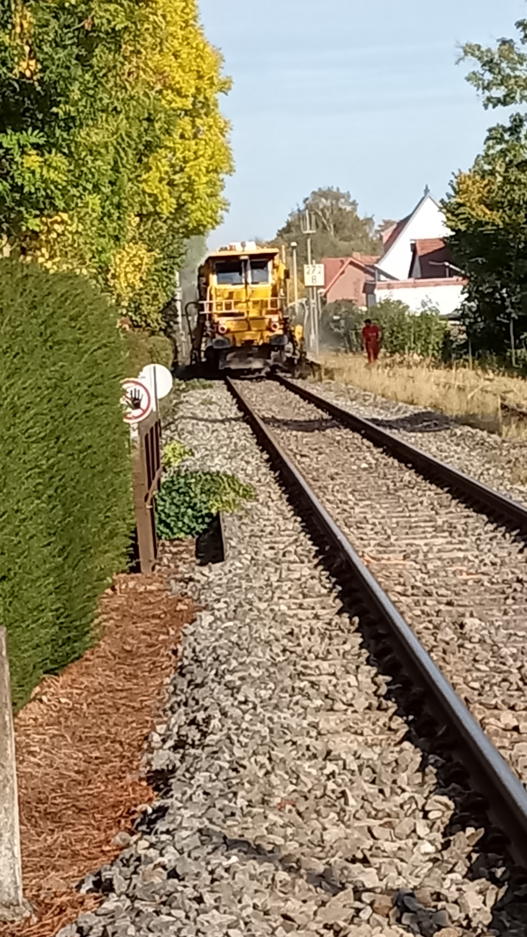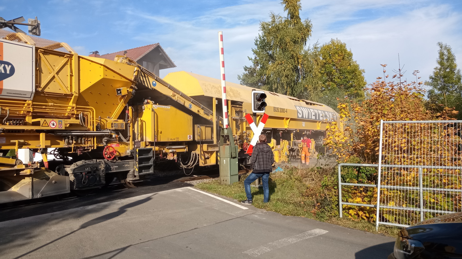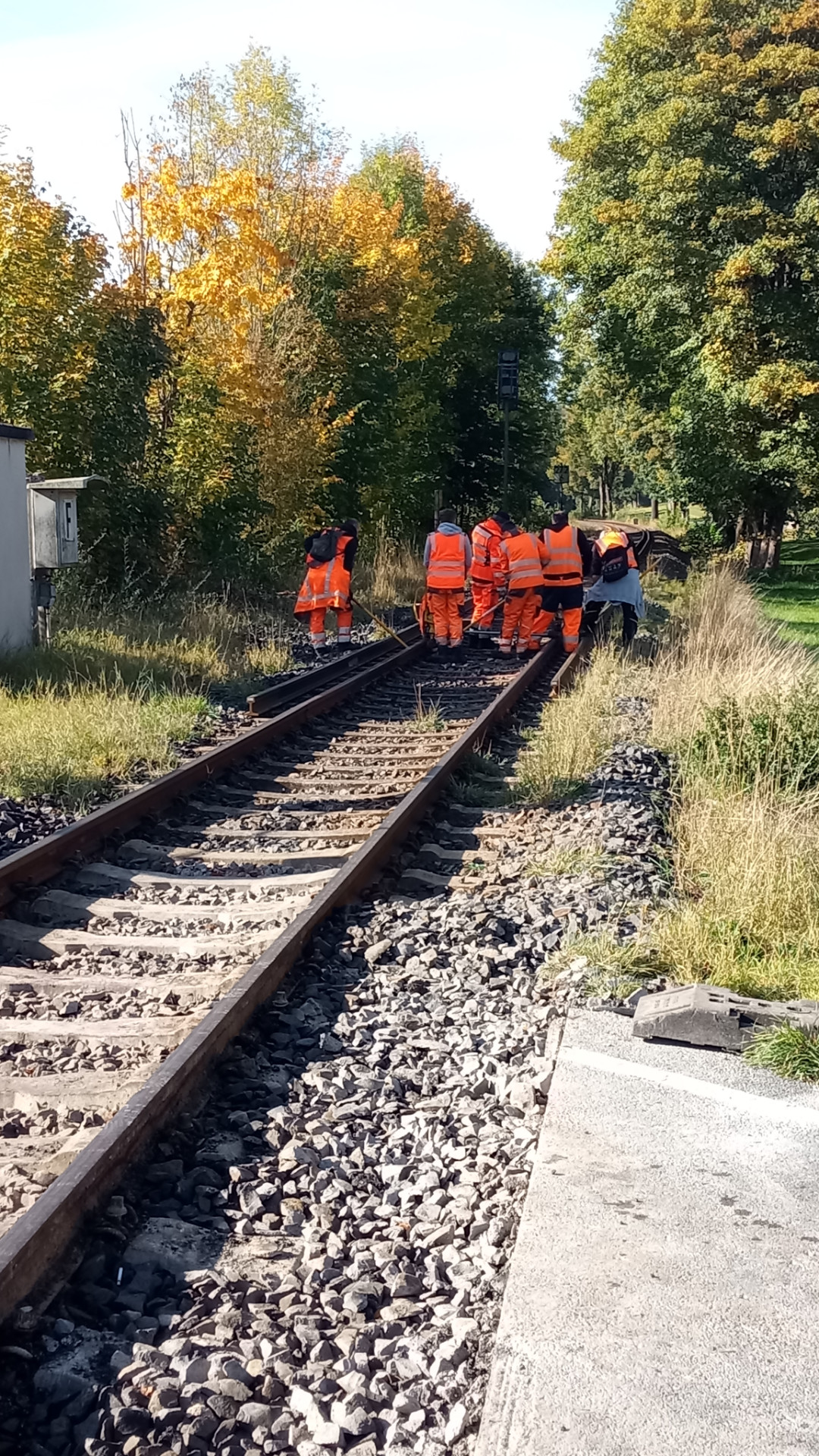 Die Jungs waren gerade am Bahnübergang "Auf der Insel" dabei die Schienen zu lösen. Ich habe mal gefragt: Schwellen bleiben drin, Gleise werden zwischen Scherfede und Marsberg neu gemacht und die Bahnübergänge. Läuft alles mit 2-Wege-Baggern und Handarbeit. Bauzug kommt nur bei Schwellenwechsel. Bilder von gerade eben: