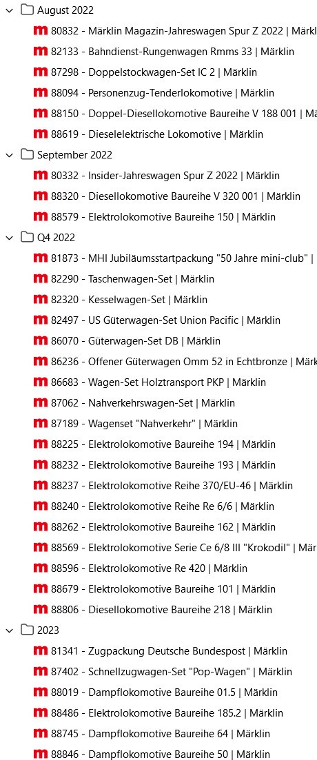 Re: Märklin Lieferterminlisten