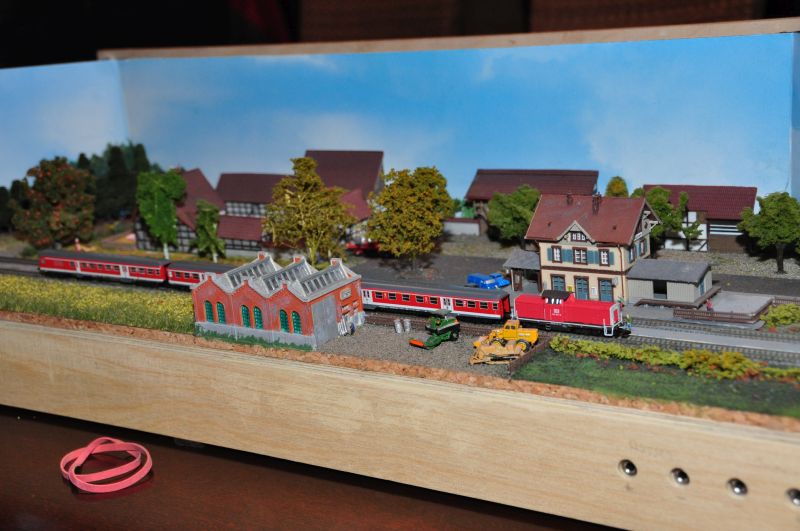 Habe mal die 0 auf rund 80 KM/h eingestellt und das kommt dabei aus der Preiserlein-Perspektive raus, das ist mir allerdings bei meiner Rentnerspurgröße viel zu schnell, kein Wunder, wenn einem schon das Hauser-Männchen einen Vogel zeigt ... aber seht selbst :