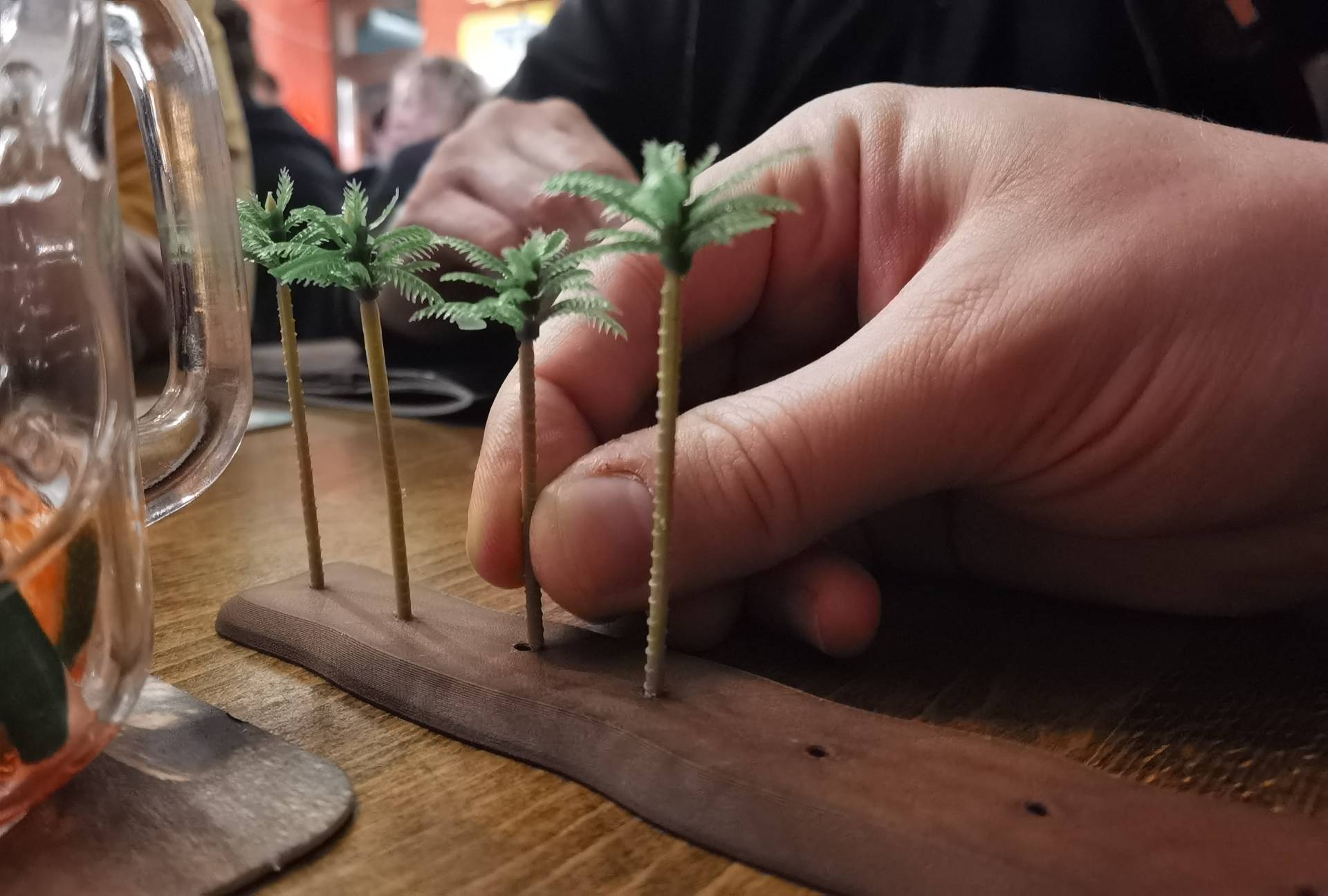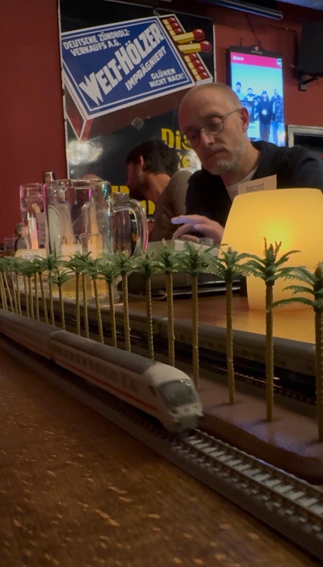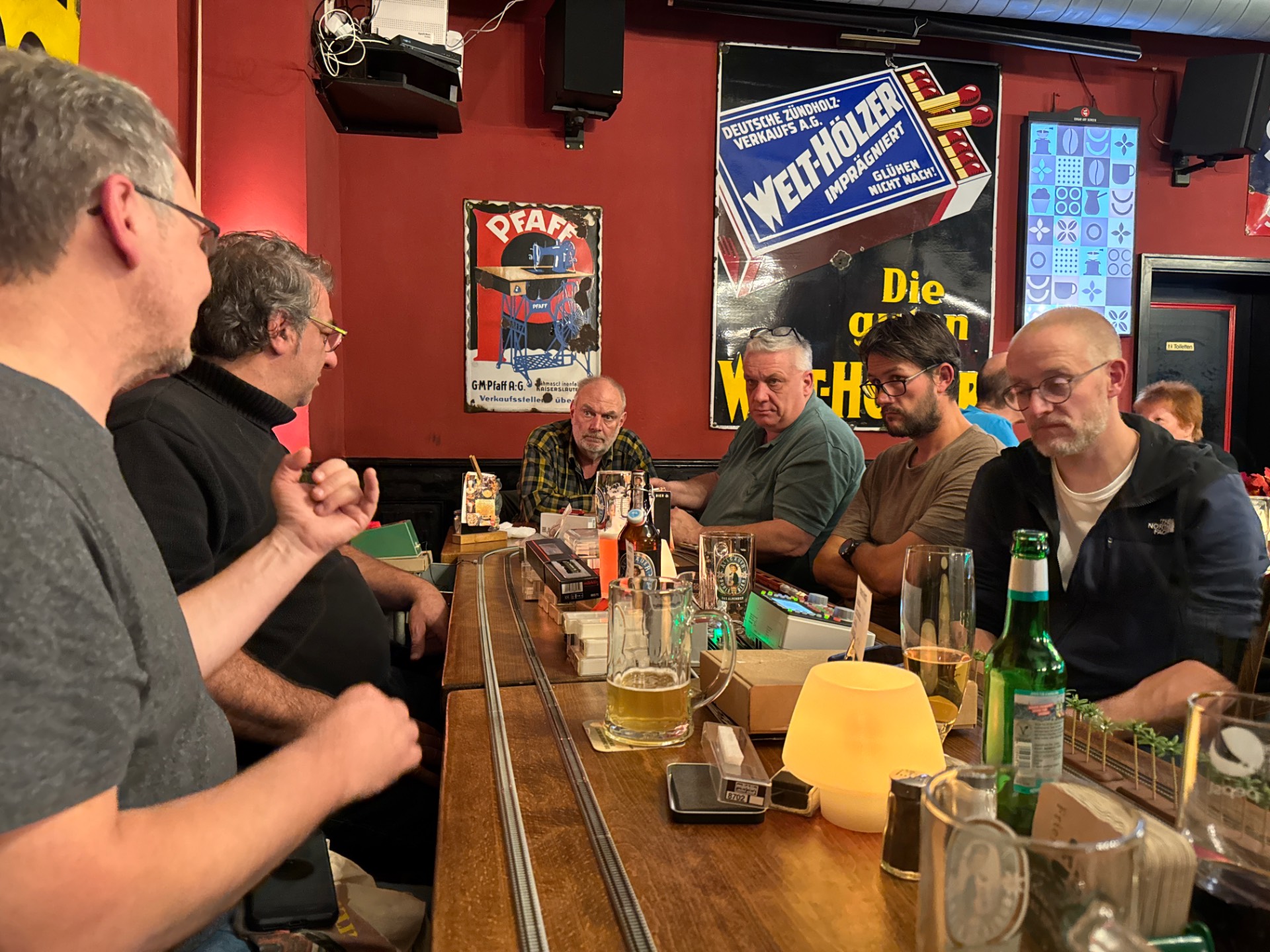 Dieses Mal war es mein zweiter Besuch bei Euch. Es war wieder ein sehr schönes Stammtischtreffen in geselliger Runde. Nach dem guten Essen wurde dann ordentlich Betrieb gemacht auf zwei großen Rokuhan Ovalen: sowohl analog als auch digital. Die Palmen verbreiteten Urlaubsflair