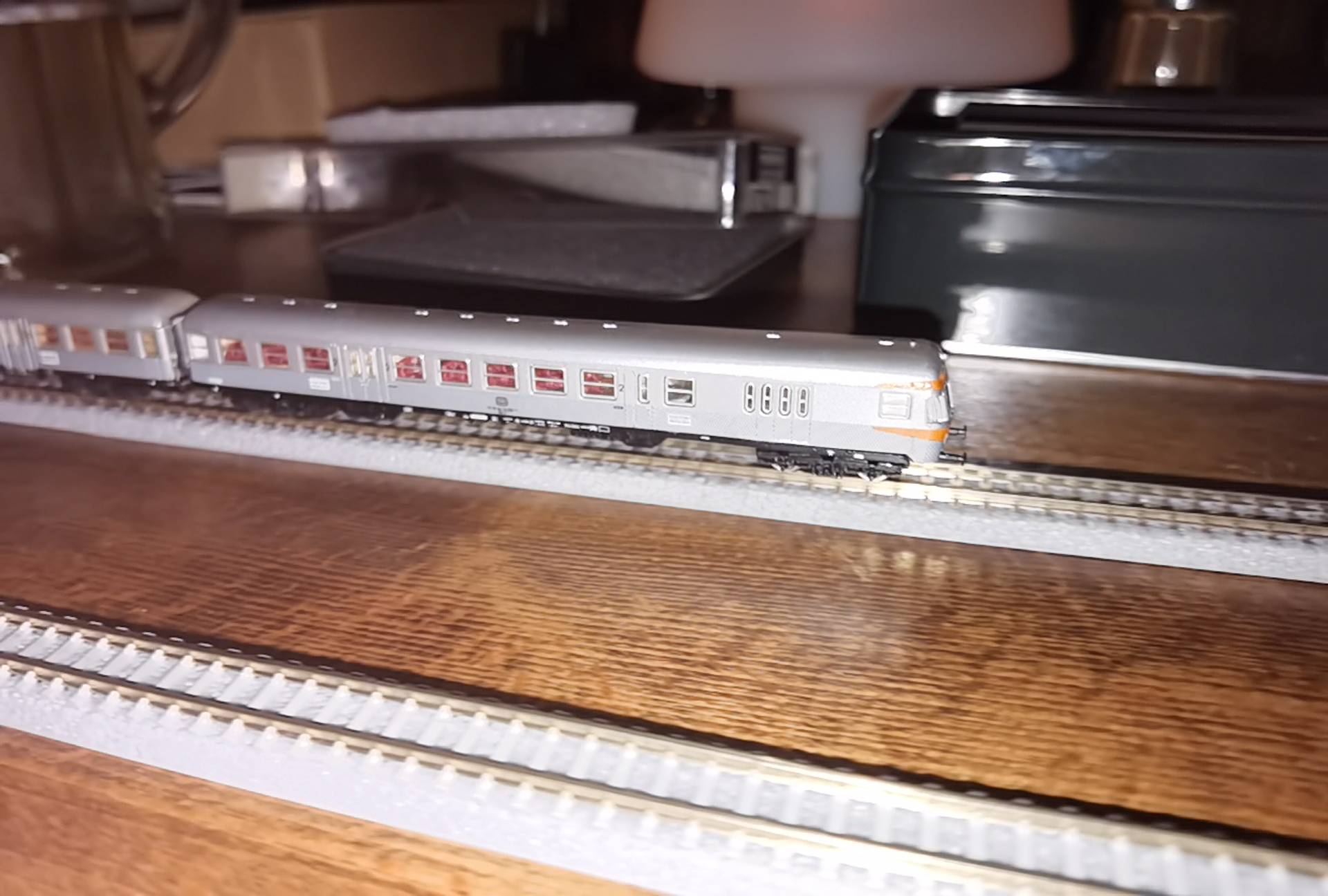 Silberling Wendezug mit Inneneinrichtung, Beleuchtung und Decoder.