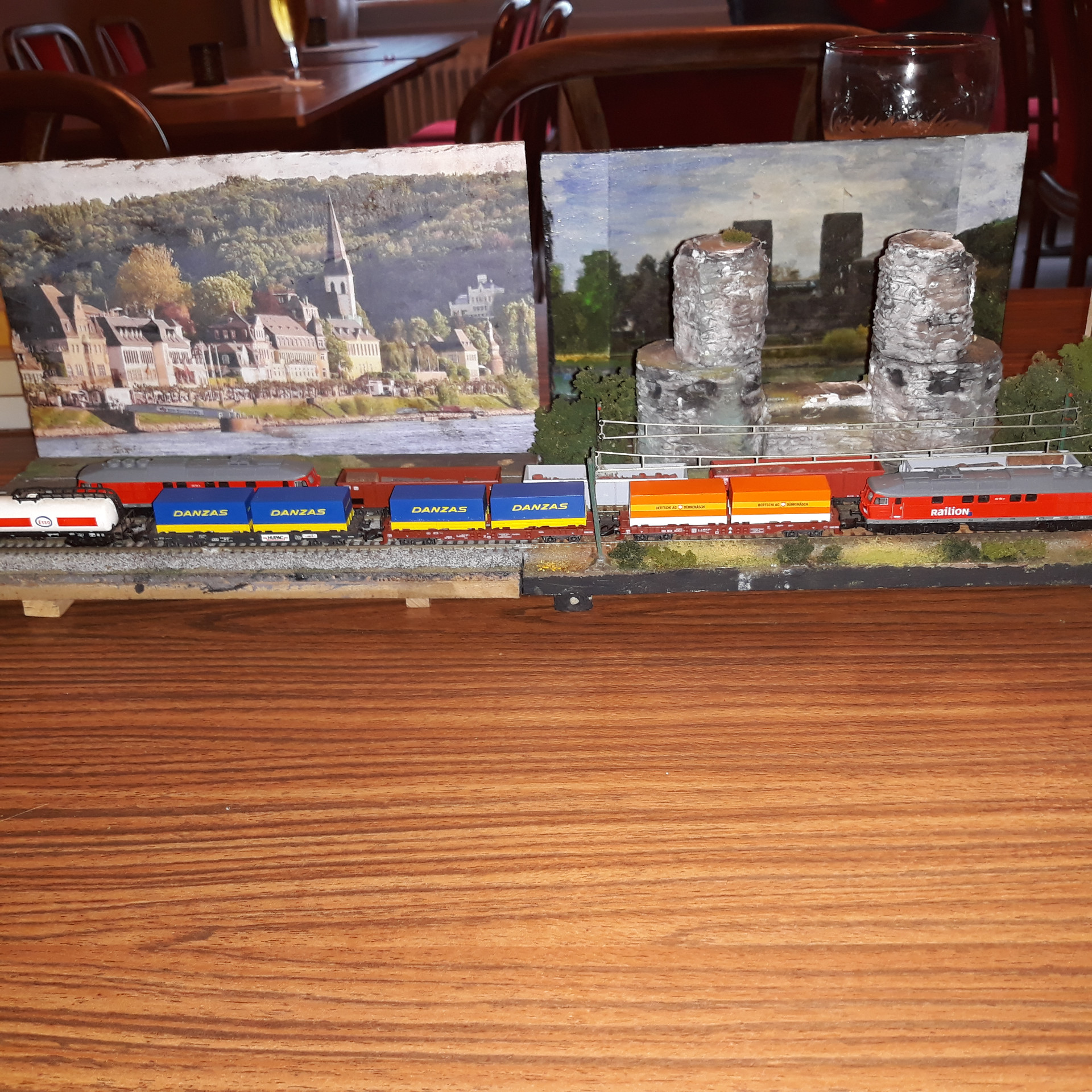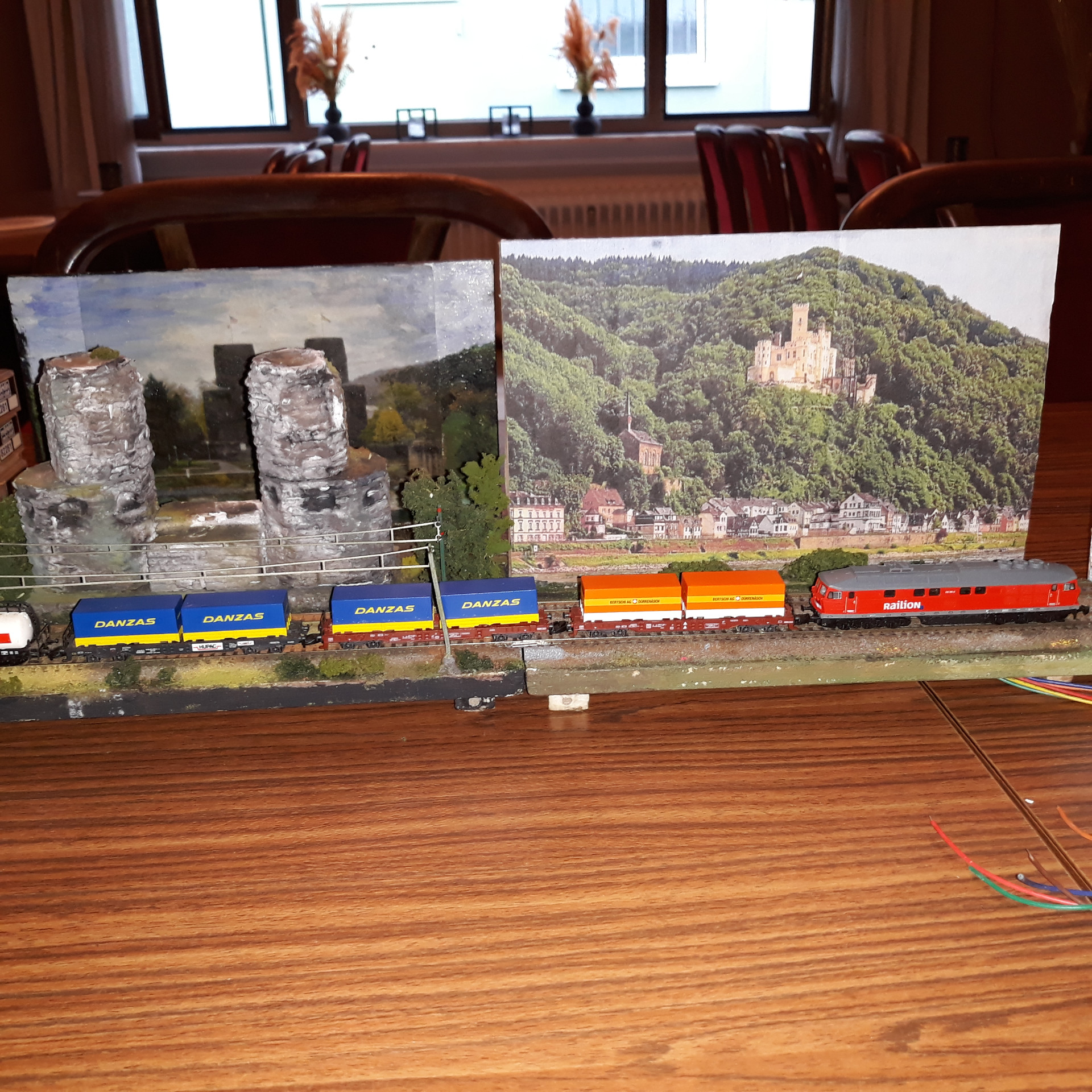 Am Stammtisch Rhein Mosel zum ersten mal aus der Schachtel und auf den Brettchen mit Rheinpanorama zum ersten mal aufgegleist - besser kann ein Rheingold wohl kaum in sein Modellbahn-Leben starten!