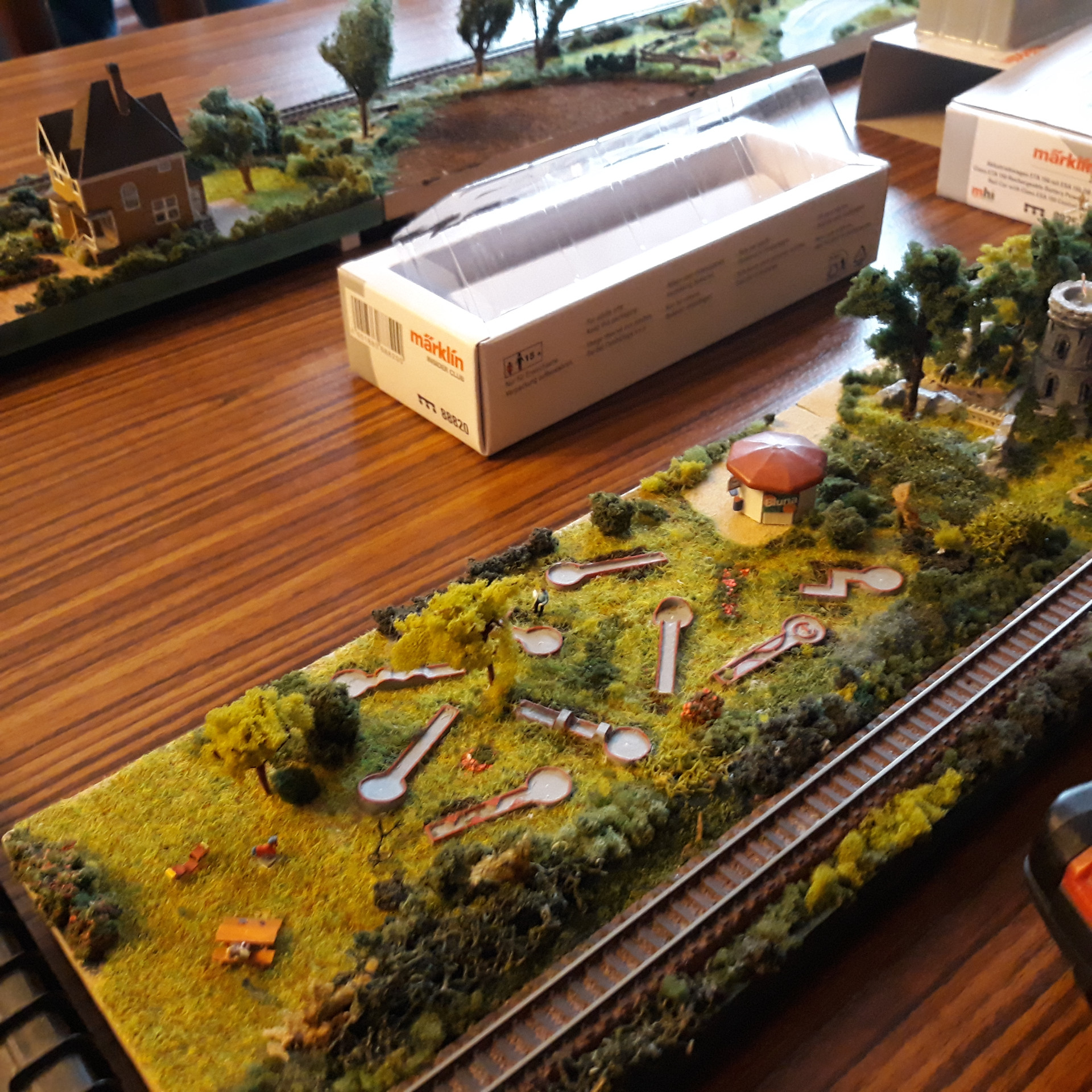 Vielen Dank an alle, die gestern dabei waren! Jahreszeitlich bedingt personell etwas ausgedünnt, dafür aber 3 Anlagen/Stammtischbrettchen-Kreise mit vielen liebevollen Details und sehr netten Gesprächen rund um unser Hobby.