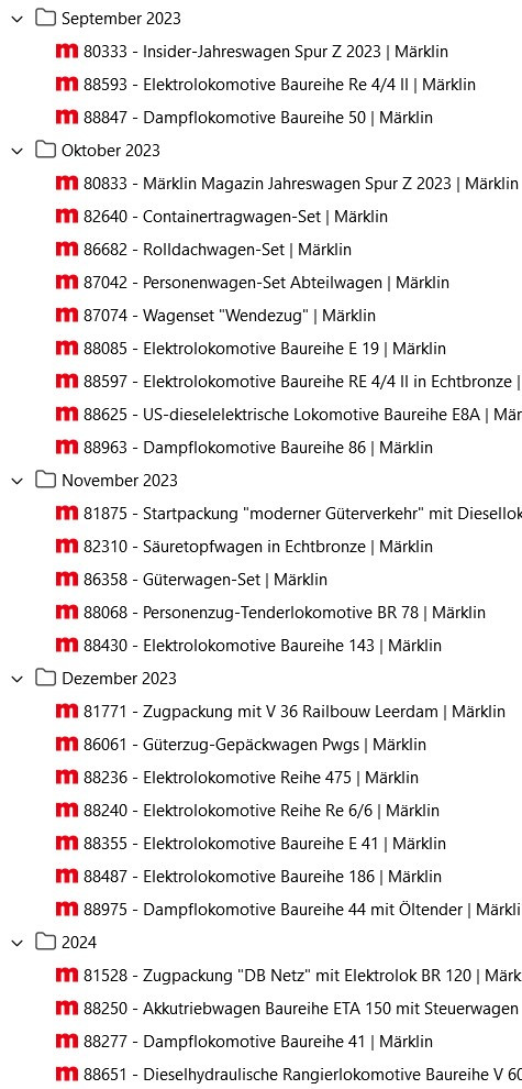 Re: Märklin Lieferterminlisten