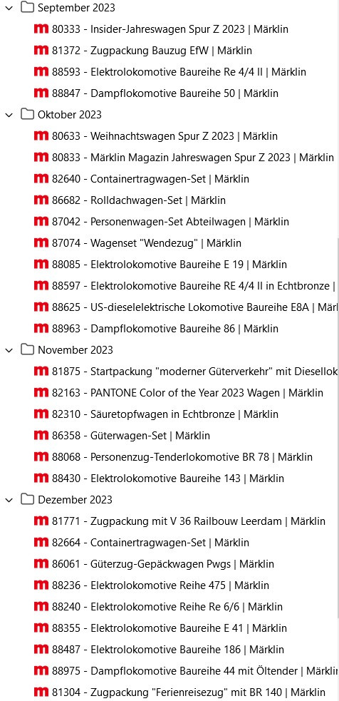 Re: Märklin Lieferterminlisten