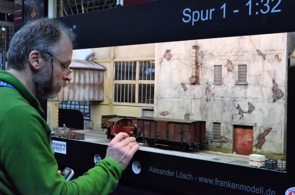 Zurück zur Anlagenkonzeption: Die Bauweise eines Guckkastens, d.h. eines geführten Blickes auf die Anlage ist da sehr beliebt, aber offenbar kein Ausschlusskriterium, denn es gab auch andere Anlagen. Erreichen lässt sich das auch auf alternativem Wege, Götz selbst hat es doch mit seiner "Vitrinen-Anlage" vorgemacht. Sehr, sehr wichtig - und das sollte doch für jede Messe gelten - sind aber ein geeigneter Hintergrund und eine eigene flächig ausleuchtende Lichtinstallation. Daran kranken viele Anlagen aller Baugrößen und viele Details bleiben wortwörtlich im Dunkeln. In den Hallen des Spoorwegmuseums ist das besonders wichtig, denn dort herrscht eine andere Lichtführung als in den üblichen Messehallen. Ein Guckkasten kann da übrigens auch Störlicht von oben oder von den Seiten abschirmen.