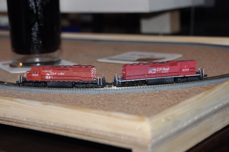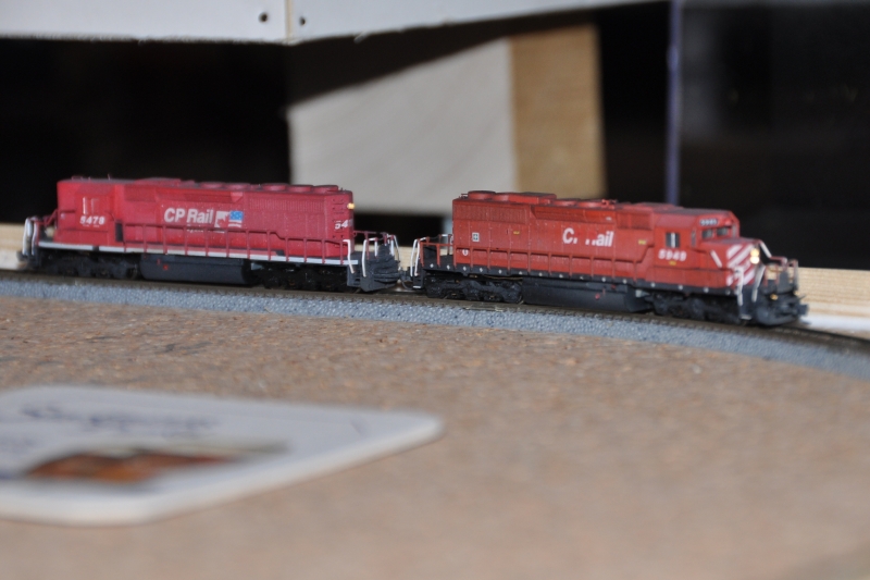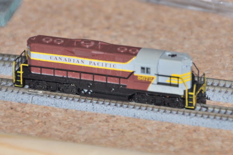 Mein selbst gewähltes Hauptthema war diesmal die Canadian Pacific mit den AZL WellCars (10 Wagen) und den Autorack (9 Wagen) Beide Sets liefen problemlos mit einer digitaliserten und modifizierten SD40-2.