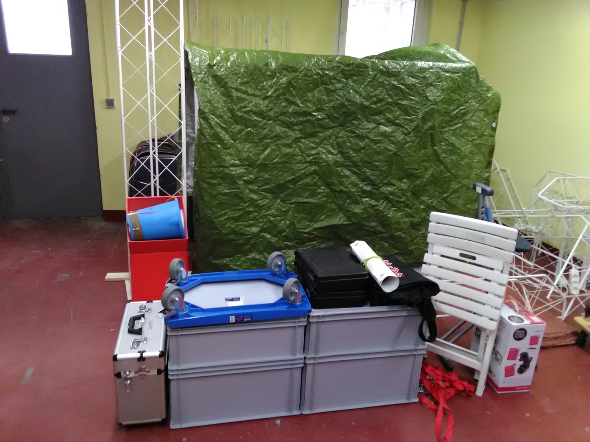 die Anlage, die Strukturelemente und alle Kisten sind gepackt, ich fahre gleich los, den Anhänger holen, dann kann er eingeladen werden. Ich freue mich schon auf euch!