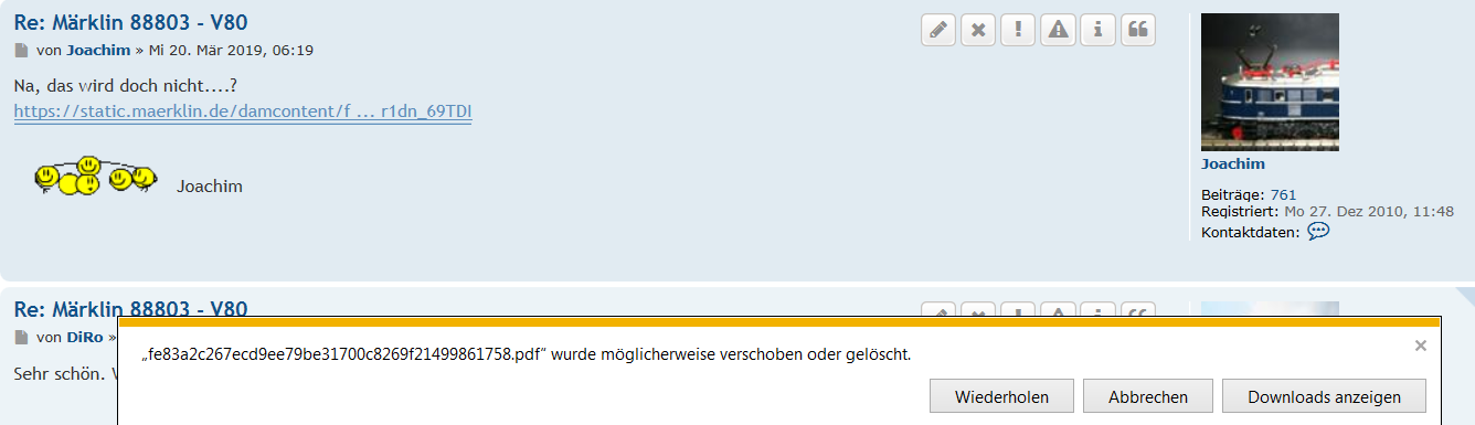 Ist die Datei schon wieder verschwunden oder stelle ich mich zu blöd an???Joachim hat geschrieben: Mi 20. Mär 2019, 06:19 Na, das wird doch nicht....?