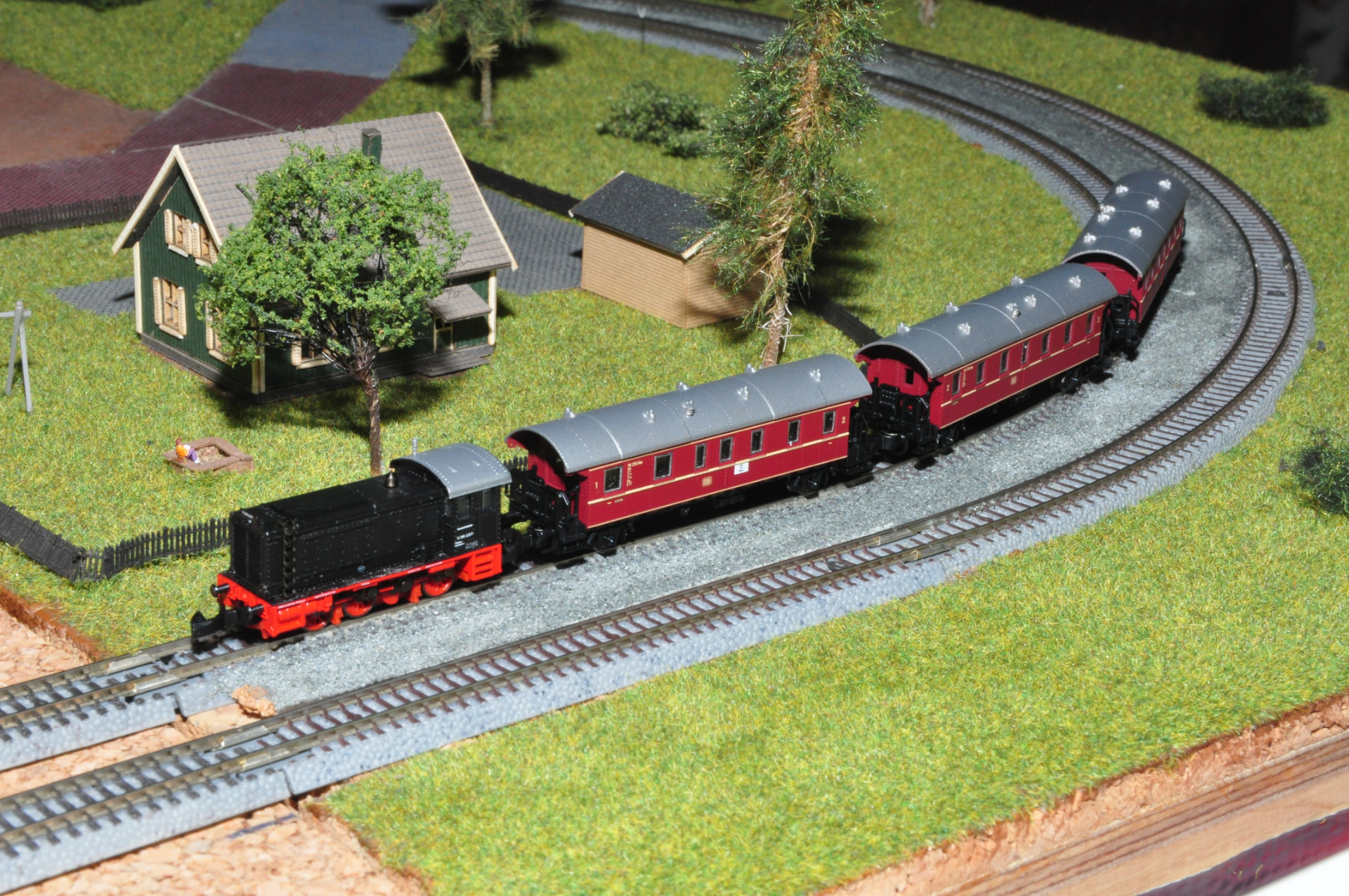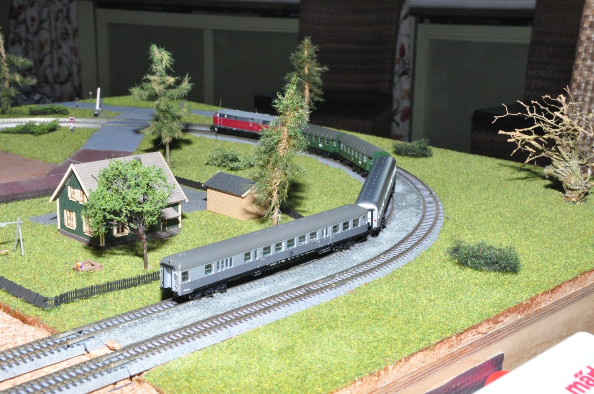 Meine, wie gleich zu sehen sein wird, zog ihre 10 Wagen ohne Probleme und schaffte sogar noch die zusätzlichen 6 Wagen aus einem anderen Wagenset, chapeau!