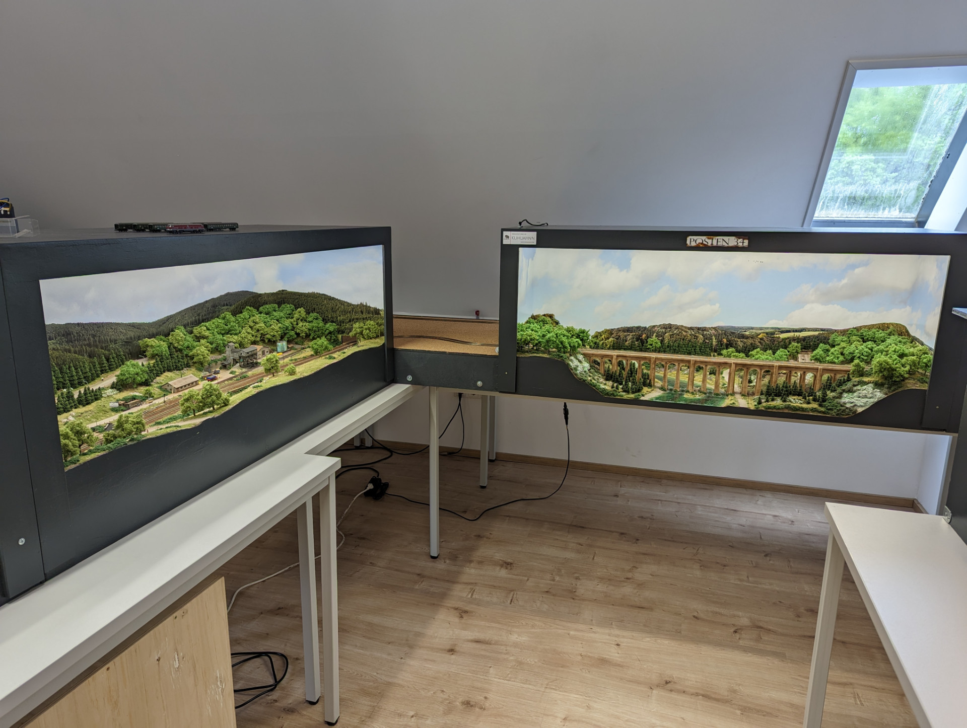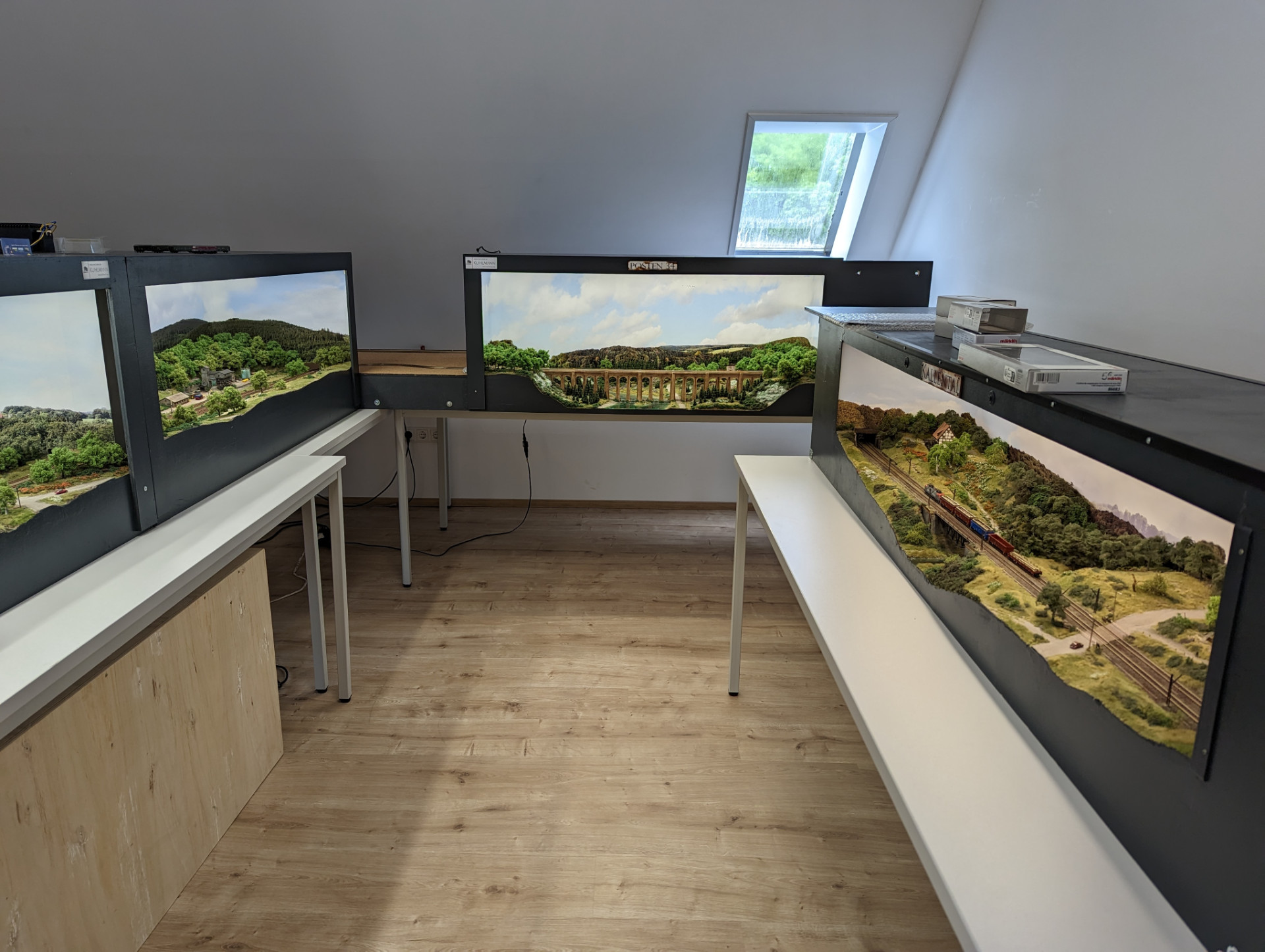 Grundsätzlich ist alles montiert. Es gibt noch einen Fehler in der verkabelung, den suche ich aber heute nicht mehr. Und dann muss noch ein neuer Plan im Traincontroller gezeichnet werden für die Gesamtanlage und ein schöner Fahrplan erstellt werden.