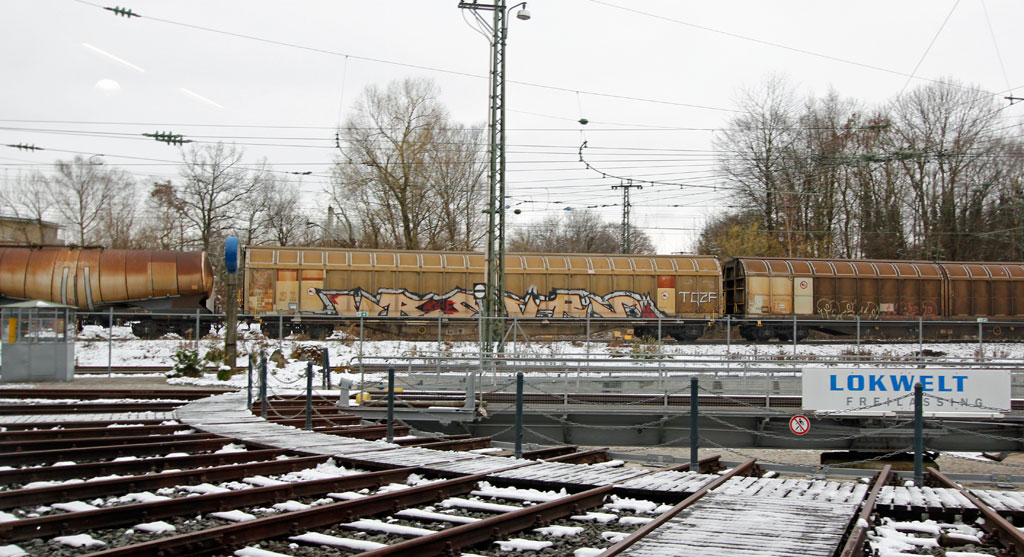 Anscheinend war auch Sascha in der Nähe, sind in meiner Wartezeit doch ein paar schön gealterte und mit Grafities dekorierte Wagons vor die Linse gekommen...
