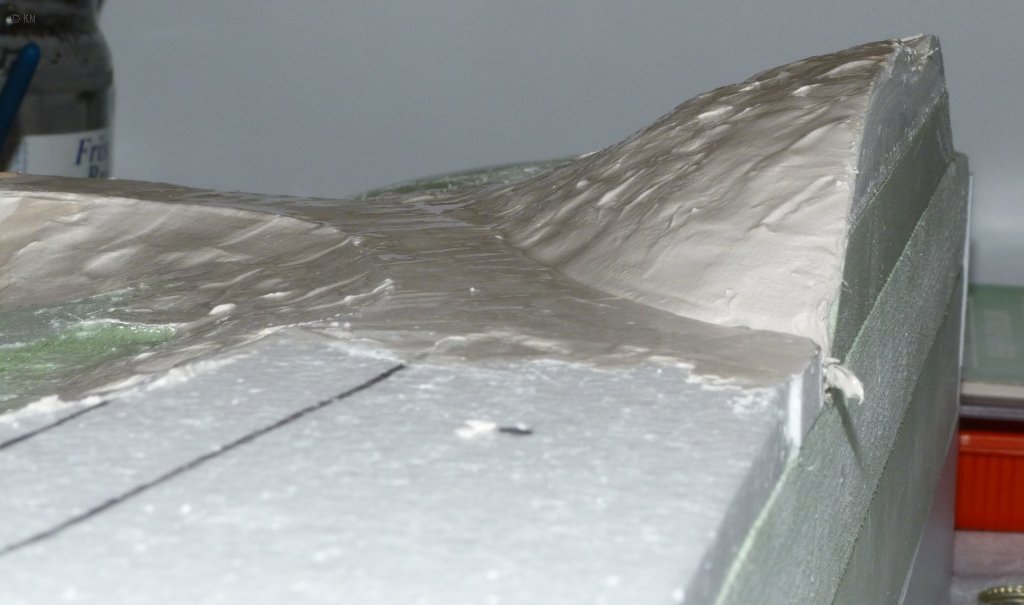 Das Gleis wurde aufgeklebt und hinter Schaumstoff versteckt ;-)