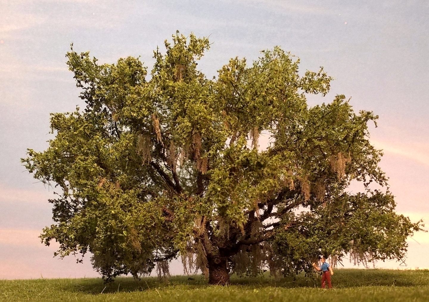 Die Virginia-Eiche, die bereits im trainini abgebildet war, ein markantes US-Suedstaaten-Gewaechs mit dem unverwechselbaren gardinenartig-herabhaengenden Spanischen Moos als Neuheit.