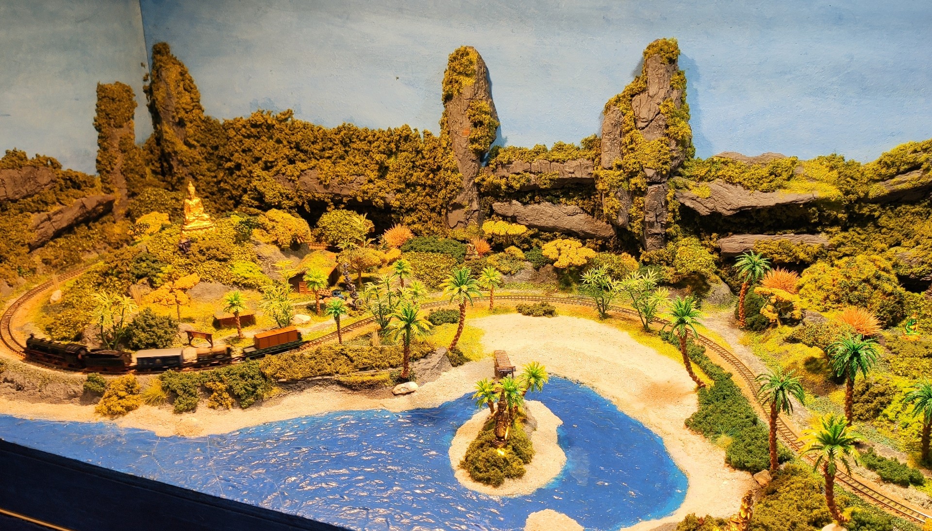 Beim zweiten Exponat kommt Urlaubsfeeling auf. Der Epoche II Güterzug ist wohl eher zufälliges Beiwerk: Auf dem dritten Exponat gefielen mir besonders die vielen möglichen Blickwinkel und das die Straßen durchgebunden waren: Eine tolle Stadtszene, die Mal gänzlich auf einen Bahnhof verzichtet.