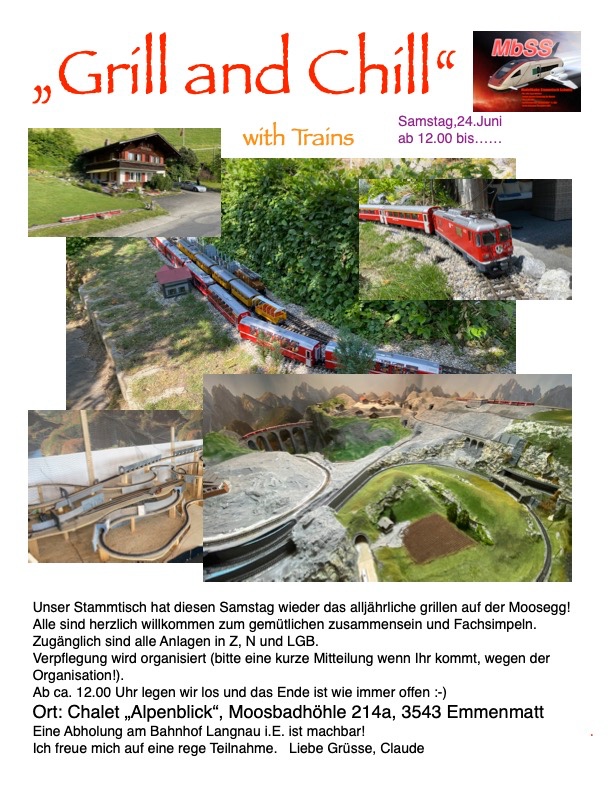 In die Stammtischnews schauen vielleicht nur wenige Nichtschweizer, "Grill and Chill with Trains" ist dann schon ein ordentlicher Teaser.E18 hat geschrieben: Mo 19. Jun 2023, 17:02 worin ist der Unterschied zu viewtopic.php?p=271502&sid=40d7232f083a ... 60#p271502