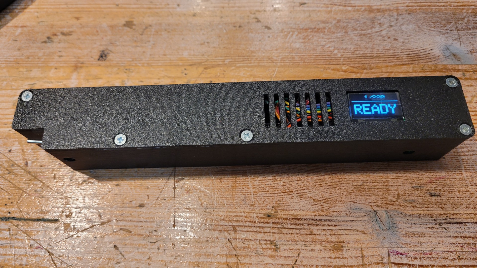 Den habe ich nachgebaut und dazu ein 3d-Druck Case entworfen. Betrieben wird das Gerät mit einer 9V Blockbatterie. Die hält bei dem Stromverbrauch des Arduino nicht lange, aber es sollte eben eine interne Stromversorgung dran und keine Powerbank mit störenden Kabel.