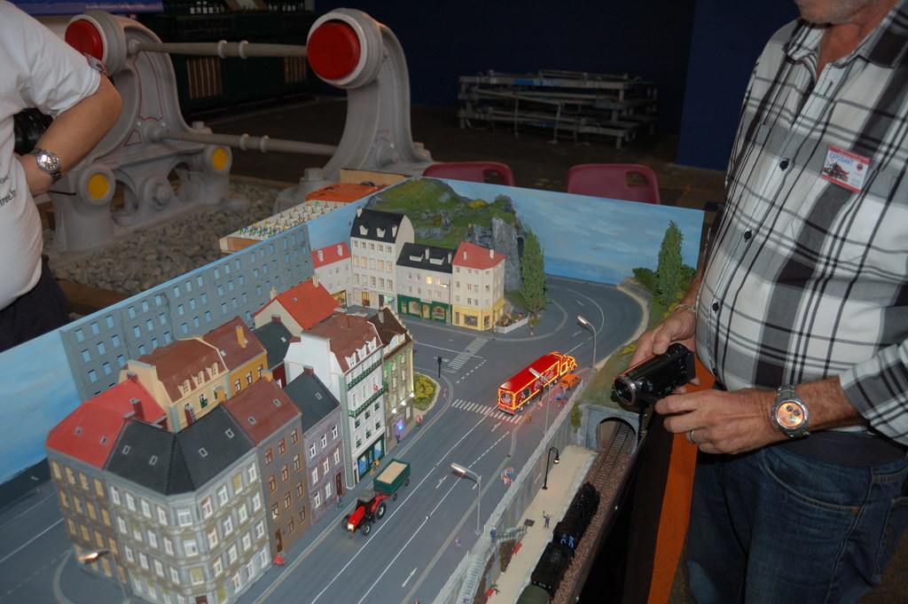hier die ersten Bilder von der Ausstellung, die uns sehr gut gefällt. Wir haben einen guten Platz direkt vor einer, auf unserer Seite aufgeschnittenen E-Lok. Auf der Anlage fahren ein Bus und ein LKW, automatisch vom Computer über die beiden Baustellenampeln gesteuert. Bisher mit riesigen Erfolg, laufend finden noch zusätzlich Vorführungen neben der Anlage auf dem Vorführbrettchen mit Busfahrgestell oder LKW mit Auflieger statt. Wir haben schon so einige Batterien durch