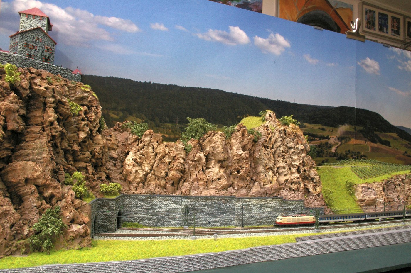 Eine zweigleisige Hauptstrecke mit Fahrleitung entlang dem imaginären Fluß "Rhosel". Nachempfunden sind einige Bauwerke und die Landschaften der Weinanbaugebiete an Rhein und Mosel. Da wäre z.B. die Blockstelle Kammereck oder das Grutenhäuschen (römische Grabstätte) bei der Ortschaft Igel. Weiterhin die obligatorisch Burg und ein Weingut. Als weitere Besonderheit ist die selbstgebaute Fahrleitung mit einer Abspannstrecke zu nennen.