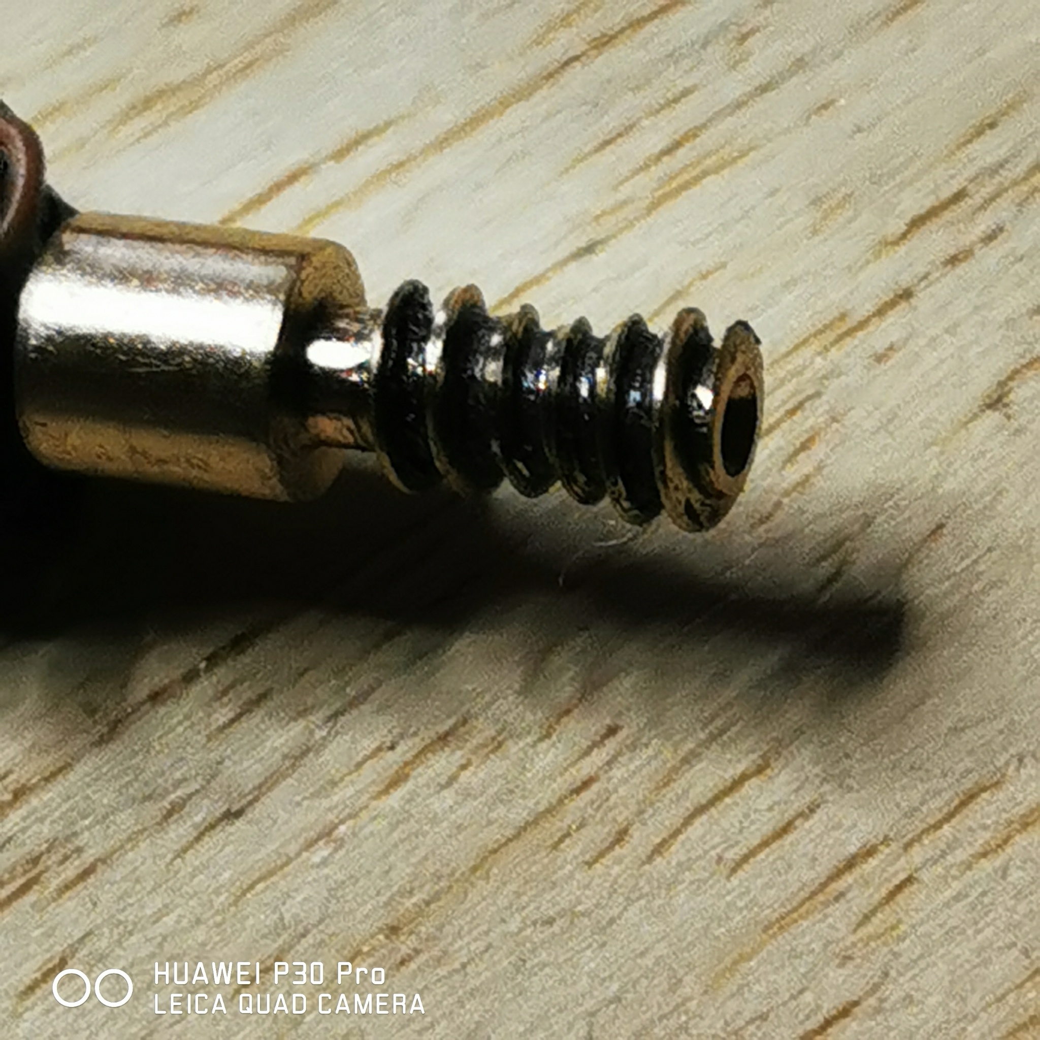 Du schreibst zudem von einem abgetragenen Ritzel und erwähnst einen neuen Motor als Ersatzteil. Das passt auch irgendwie nicht. Was aus Messing ist, ist die Schnecke auf der Welle. Ich vermute, dass die eingelaufen ist. Da ihr Material weicher als das Metall der Zahnräder ist, wäre das dann auch einzig plausibel bei einer erhöhten Reibung. Ohne die Ursache dafür beseitigt zu haben - mangelnde Schmierung war es ja offenbar nicht - wird das Problem/Symptom auch wohl wiederkommen.