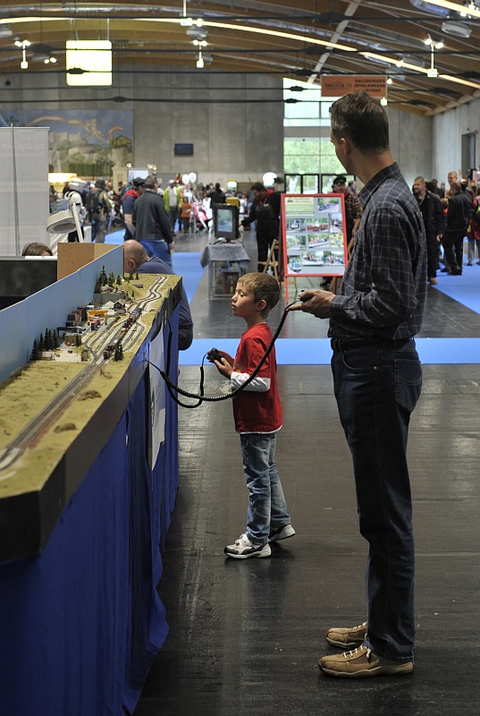Besonders hat mich gefreut, dass am Nachbarstand der Modelleisenbahnverein Salzburg zu finden war, der einige Dioramen und Modelle unseres leider so früh verstorbenen Stammtischmitglieds Günther Kulzer ausstellte. Der Verein hat alle Spur-Z-Sachen von Günther übernommen und führt sie im Vereinslokal und auf Ausstellungen weiterhin der Öffentlichkeit vor - die "Bayrische Landpartie" in der Hutschachtel wird demnächst dauerhaft in der Lokwelt Freilassing zu sehen sein.