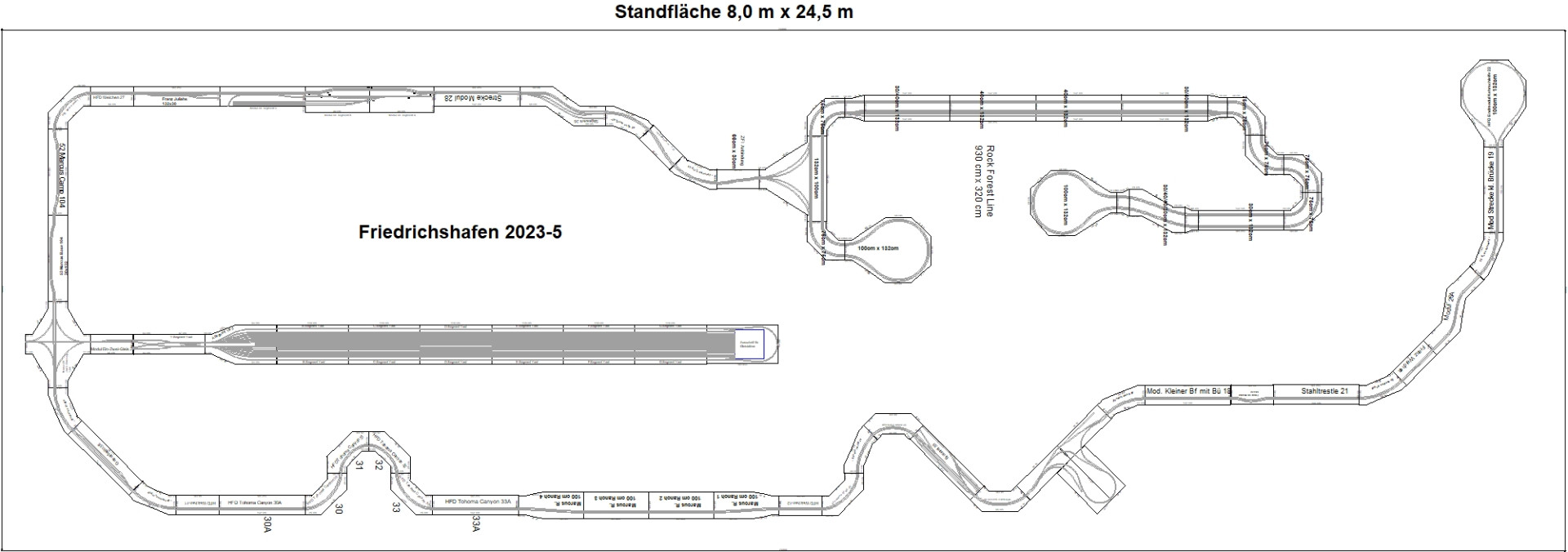 Unter anderem werden gezeigt: die US Z Lines mit der Rock Forest Line, den Modulen Hight Franks Division, den Modulen der SouthWest Division und auch Modulen der Austria Division. Natürlich gibt es auch neue Module. Wir fahren richtig lange Züge und freuen uns auf unsere Gast-Fahrer.