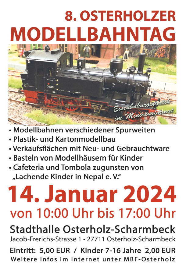 am morgigen Sonntag, dem 14.01.2024 findet der 8. Osterholzer Modellbahntag in der Stadthalle von Osterholz-Schrmbeck statt.