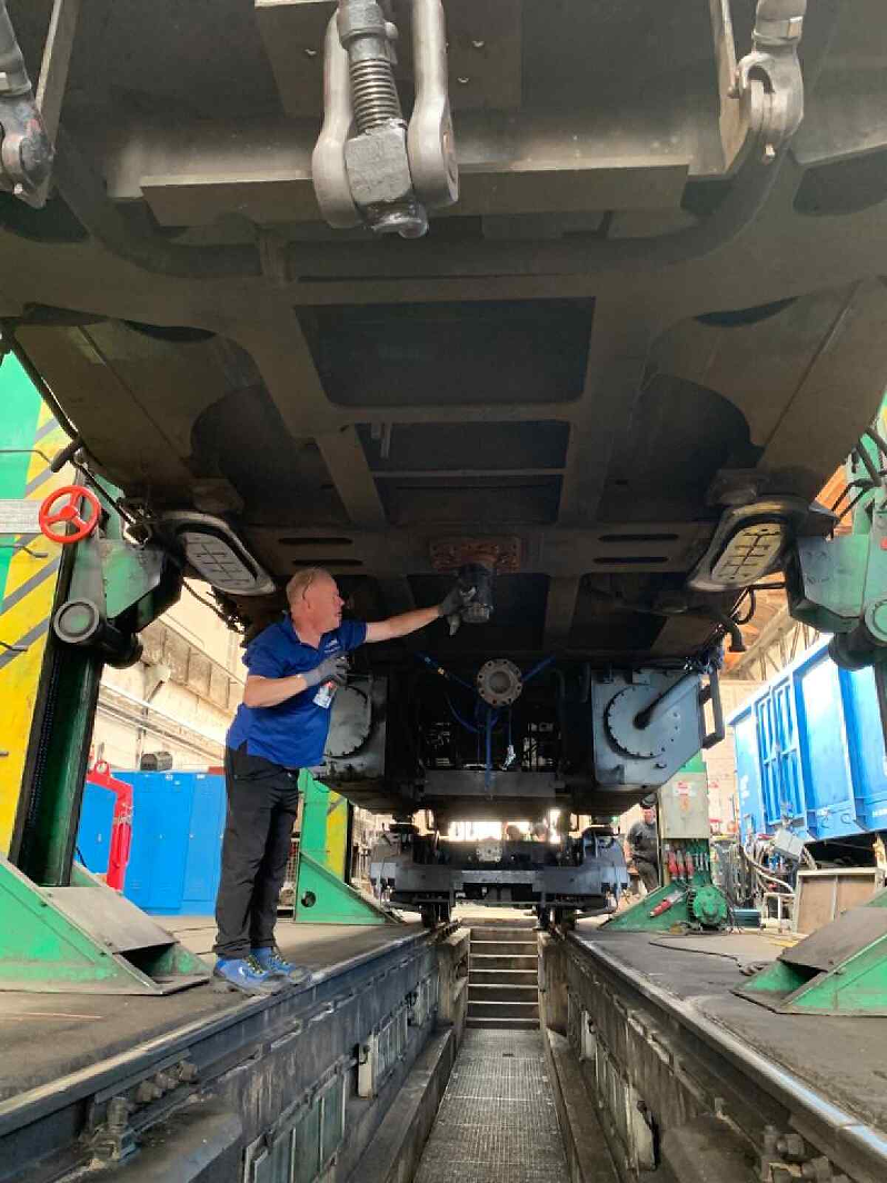 Das Drehgestell hat Drehzapfen-Lagerung: