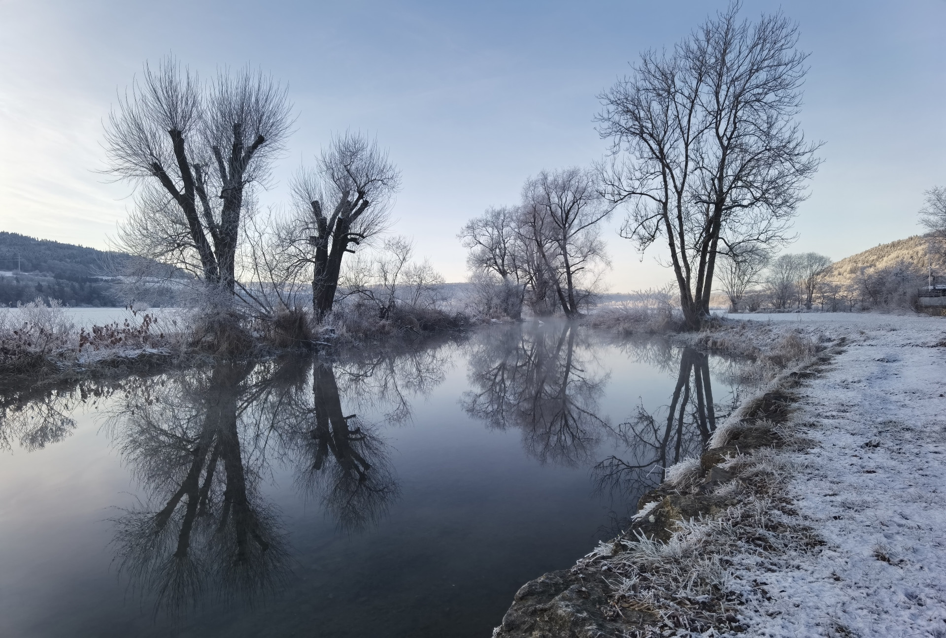 Bevor ich mit weiteren Anlagenbildern fortfahre, ein oder zwei Bilder von der Donau gestern Morgen vor Ausstellungsbeginn. Es war knackig kalt, Temperatur war - 11°C.