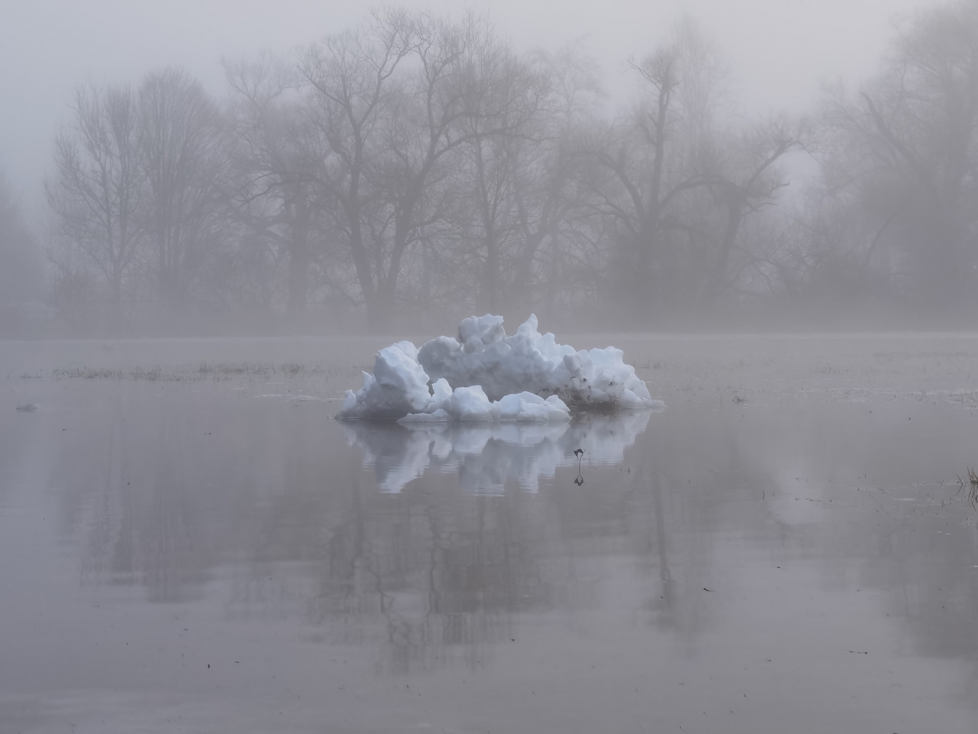 Schmelzwasser der Donau, Eisberges schwimmen daher