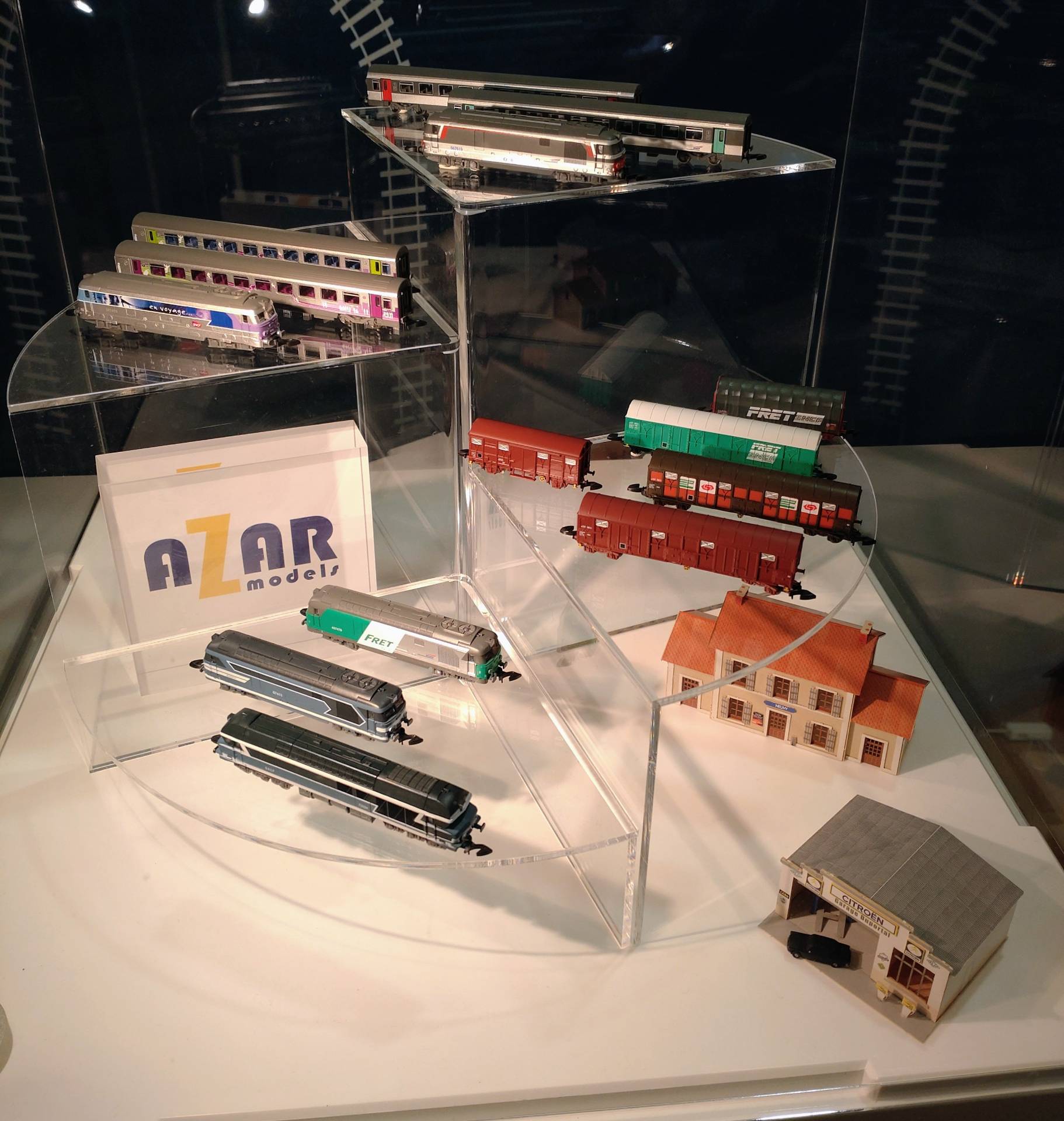 Ich war heute auf der alljährlichen Austellung des Modellbahnclubs Saint-Mandé, ein Vorort im Osten von Paris. Dort wird hauptsächlich großspurig aufgetreten, aber es gibt auch einen Wettbewerb im Bau von Spur Z-Modulen. Nach Anmeldung erhält man vom Verein den Rohbau eines Moduls, dass man dann nach freien Stücken gestalten kann. Die Besucher sind aufgefordert, die Module zu bewerten, der Sieger erhält dann einen Preis. Außerdem gab es einen Stand von Azar.