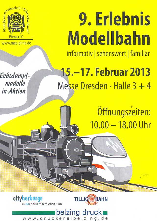 Mit diesem Slogan wirbt der MEC Pirna für seine Modellbahnausstellung vom 15. Februar 2013 - 17. Februar 2013 in den