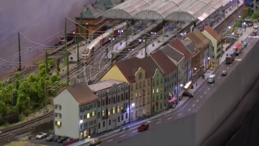 Eine relativ kompakte H0-Anlage, die jedoch durch geschickte Anordnung der Gebäude eine größere Stadt vortäuscht: